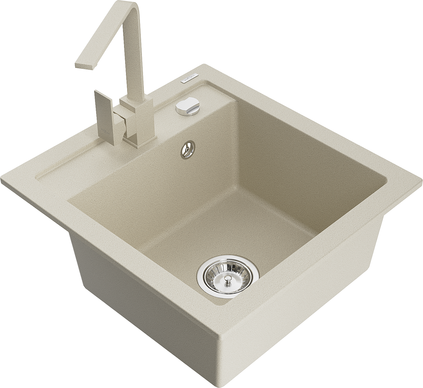 Mexen Vito chiuvetă granit 1-cameră cu bateria de bucătărie Rita, bej - 6503-69-670300-69
