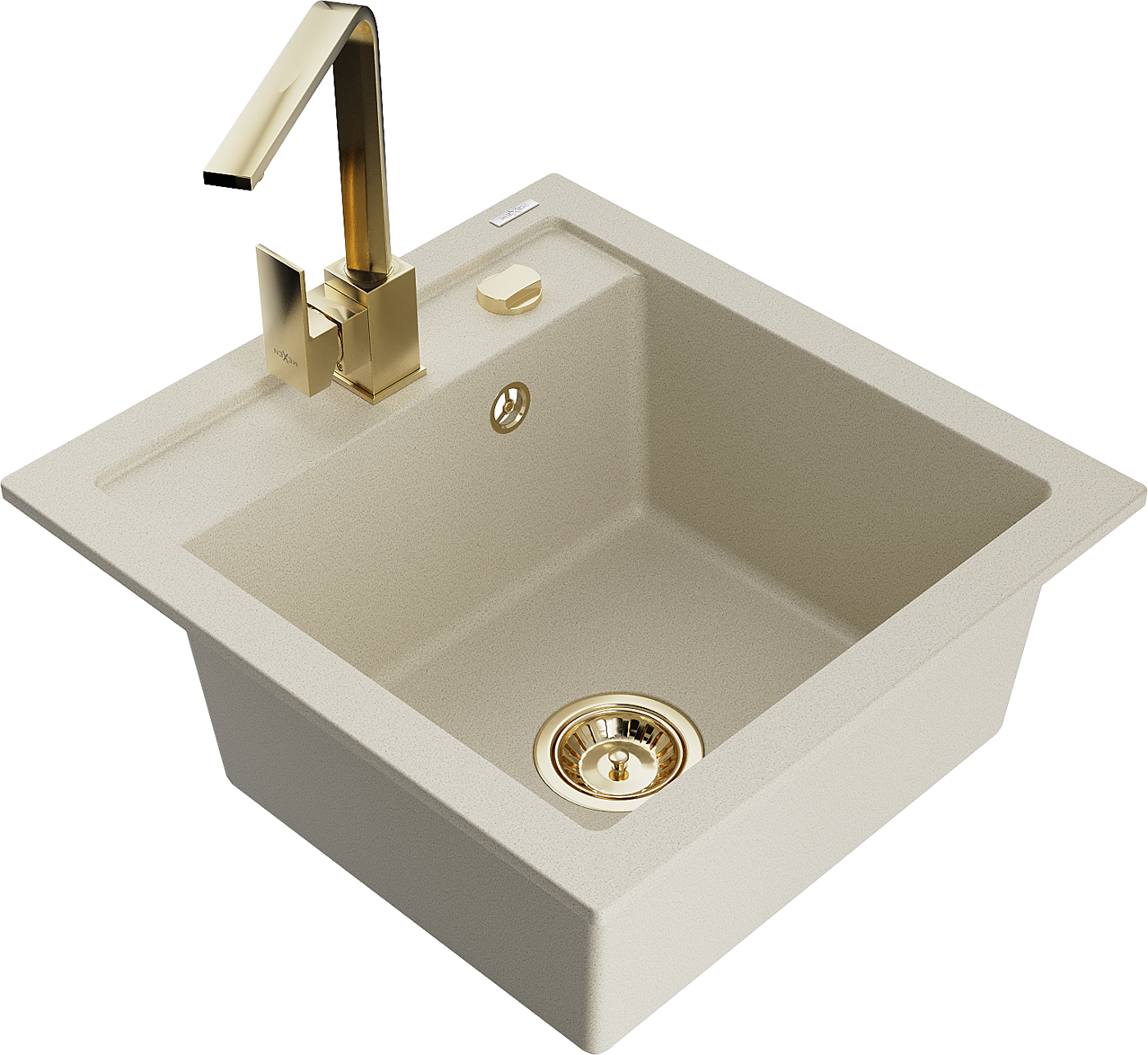 Mexen Vito chiuvetă granit cu 1 compartiment și baterie de bucătărie Rita, bej - 6503-69-670300-50