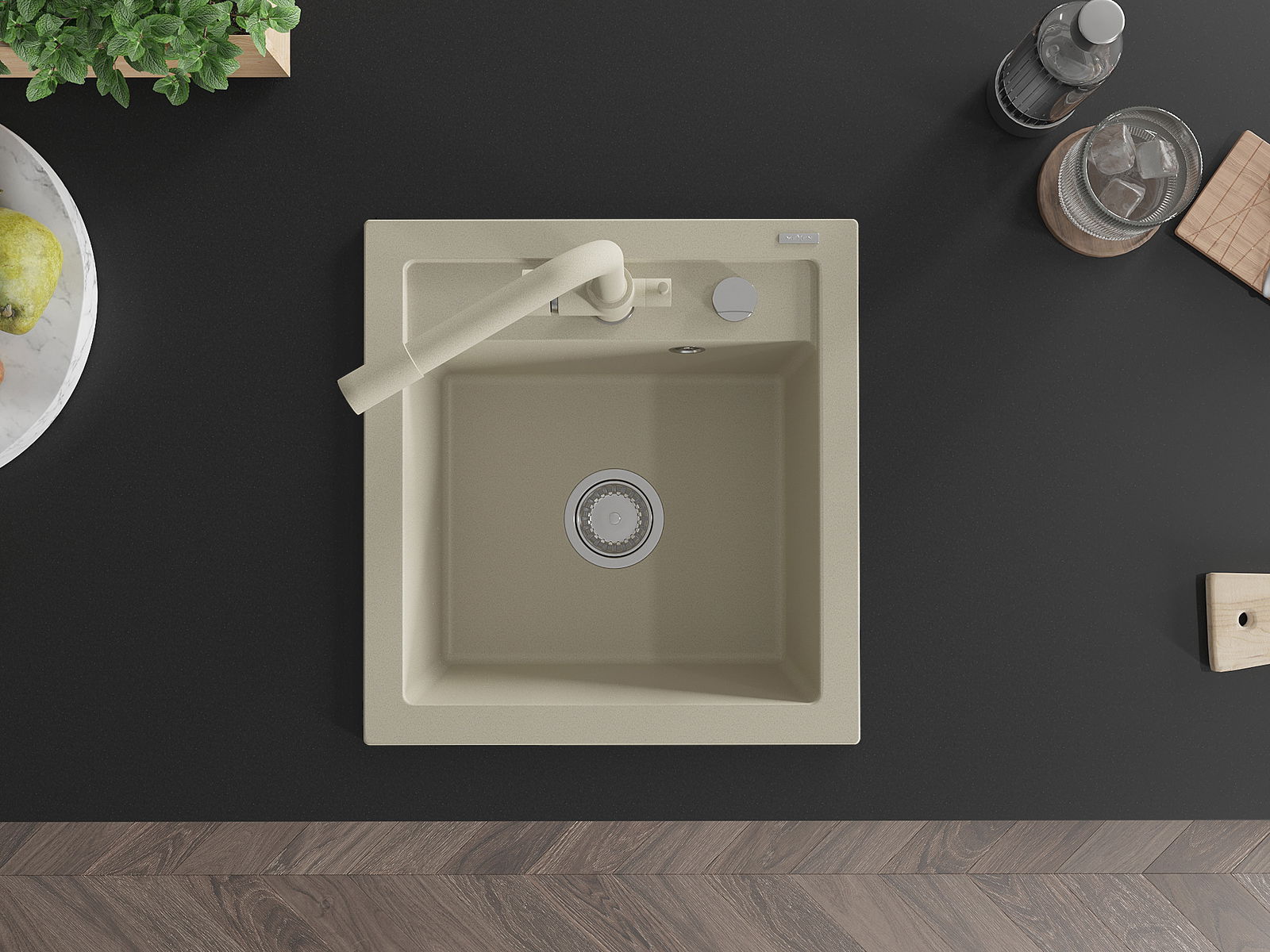 Mexen Vito chiuvetă de granit cu 1 cameră și baterie de bucătărie Duero, bej - 6503-69-671600-69