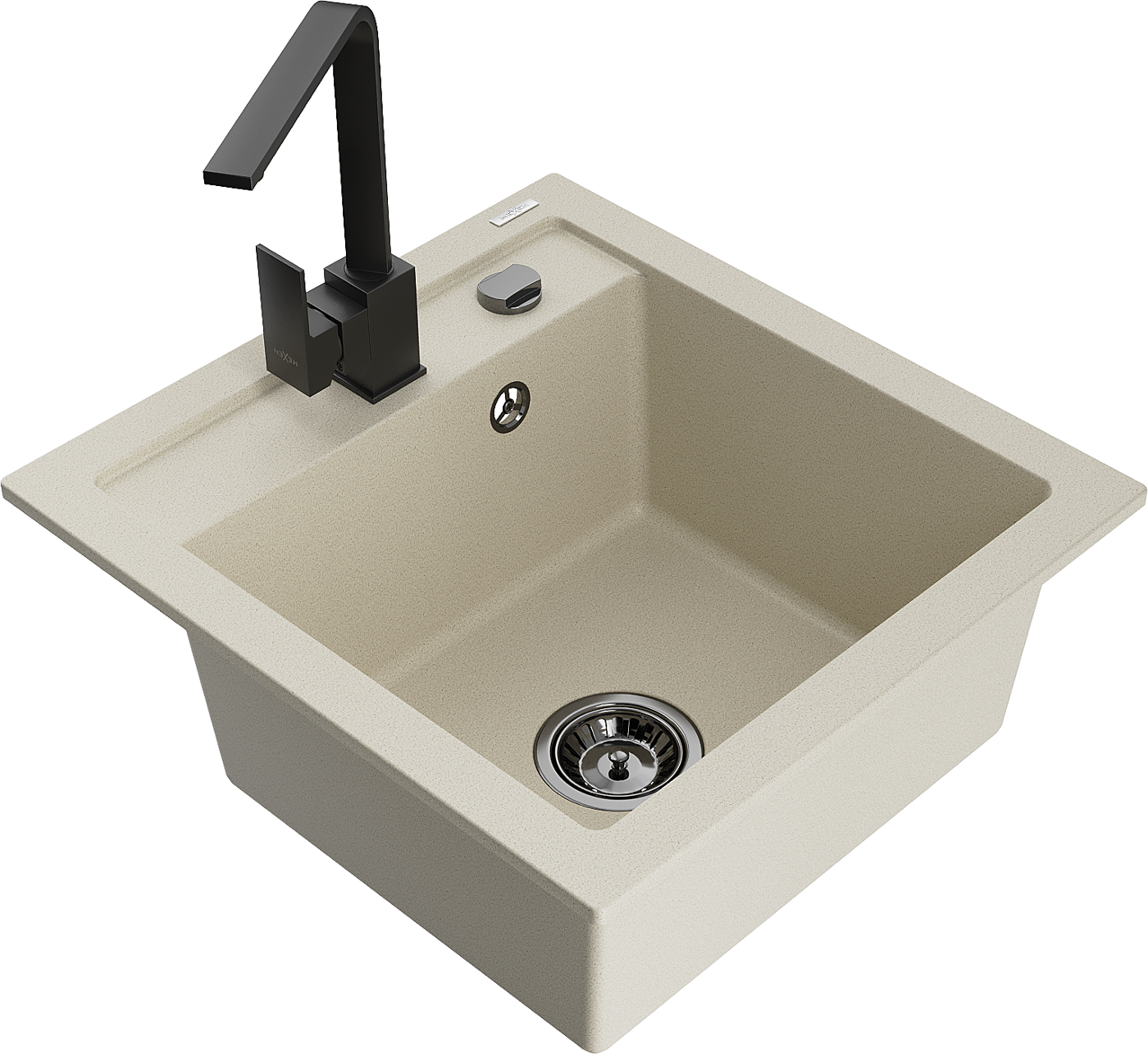 Mexen Vito chiuvetă de bucătărie din granit cu 1 cuvă și baterie de bucătărie Rita, bej - 6503-69-670300-70
