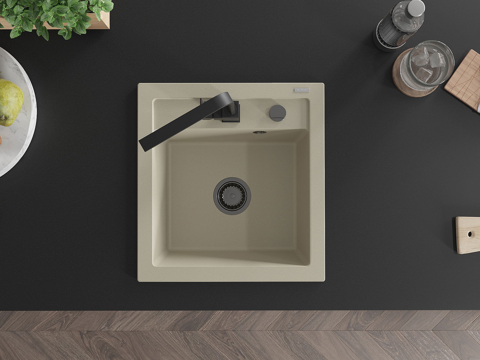 Suprafața chiuvetei este rezistentă la pete și decolorarea, datorită căreia este ușor de curățat și își păstrează culoarea mult timp. Estetică și practic completarea fiecărei bucătării.