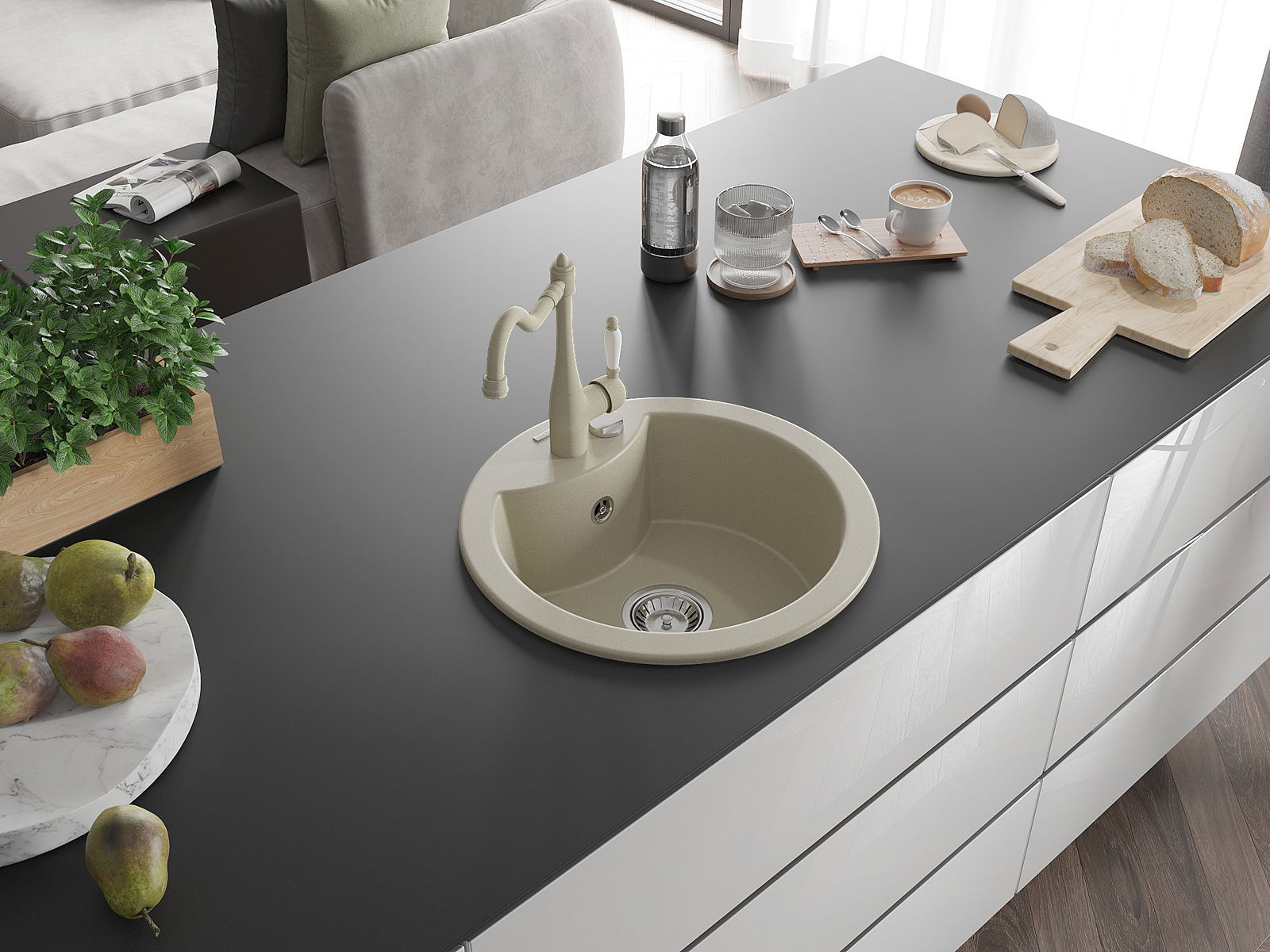 Suprafața chiuvetei este rezistentă la pete și decolorarea, datorită căreia este ușor de curățat și își păstrează culoarea mult timp. Estetică și practic completarea fiecărei bucătării.