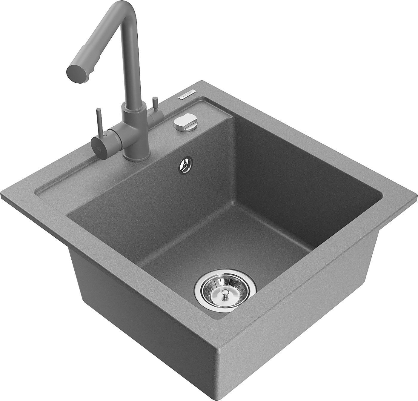 Mexen Vito chiuvetă de bucătărie din granit cu 1 cuvă, cu baterie Duero, gri - 6503-71-671600-71