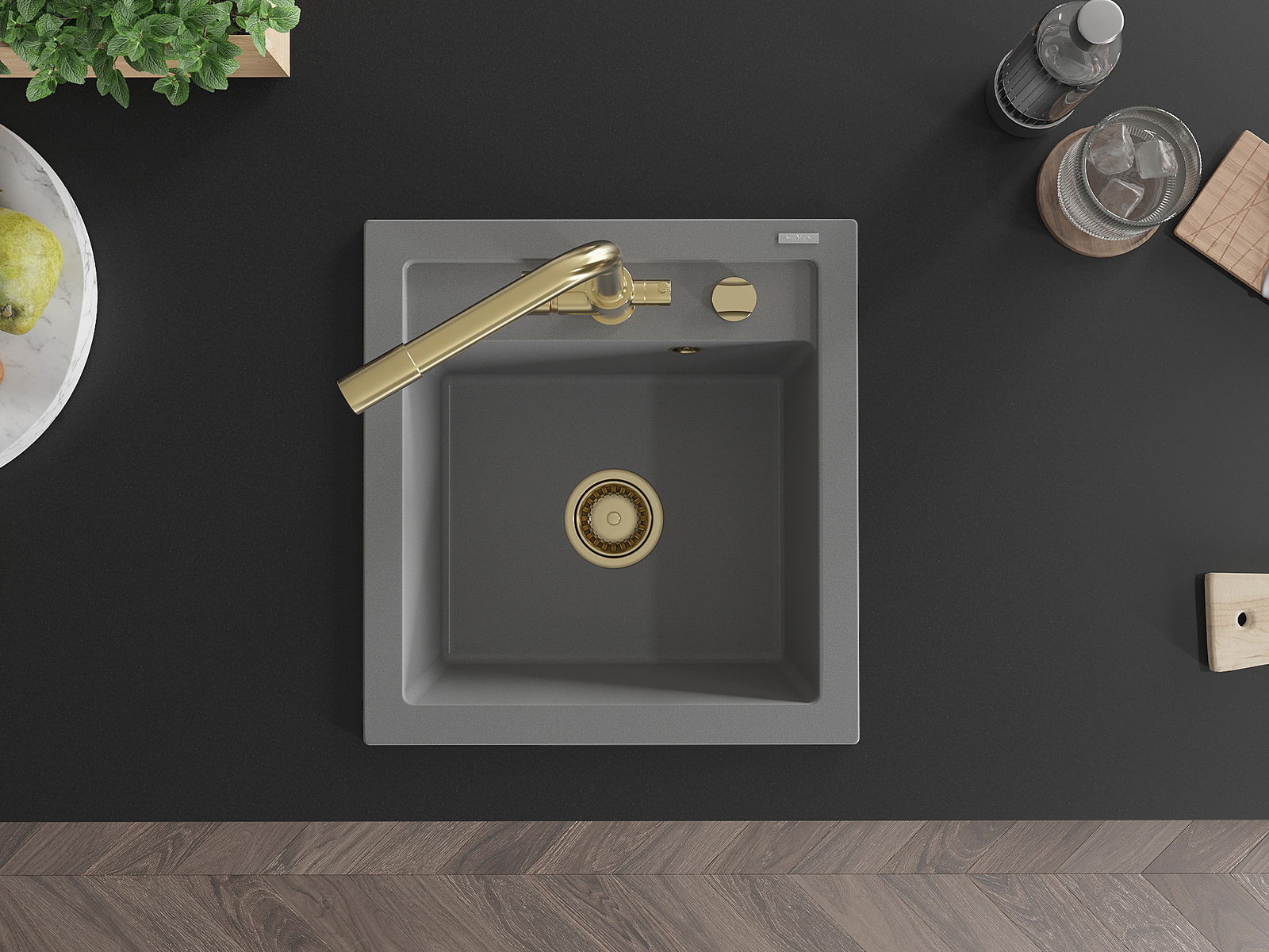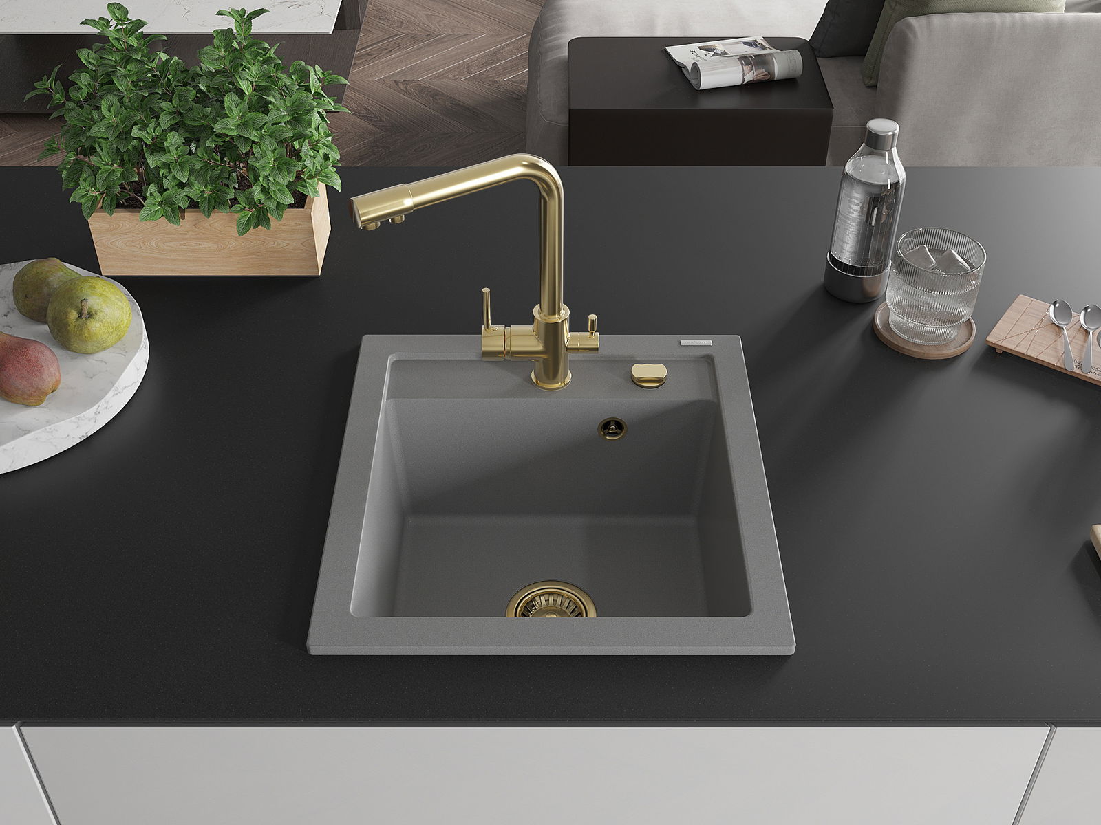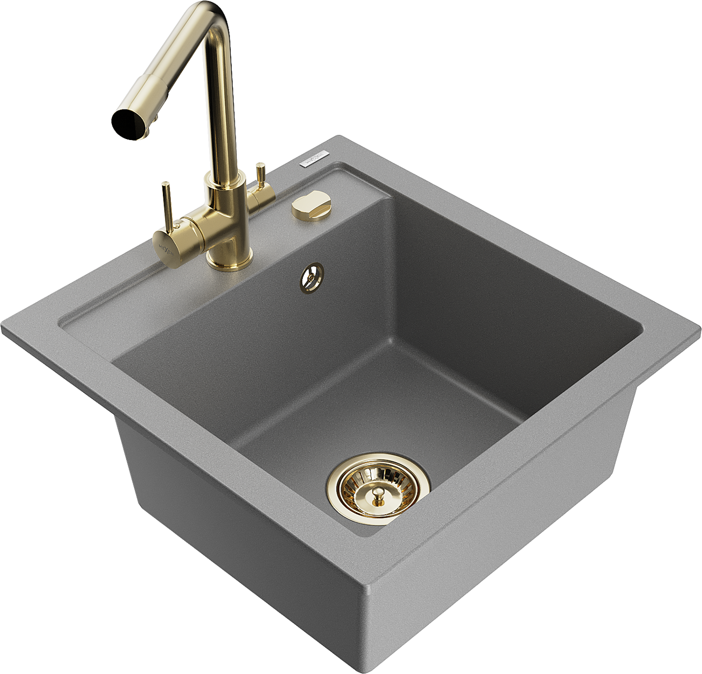 Mexen Vito chiuvetă bucătărie din granit cu 1 compartiment și baterie de bucătărie Duero, gri - 6503-71-671600-50