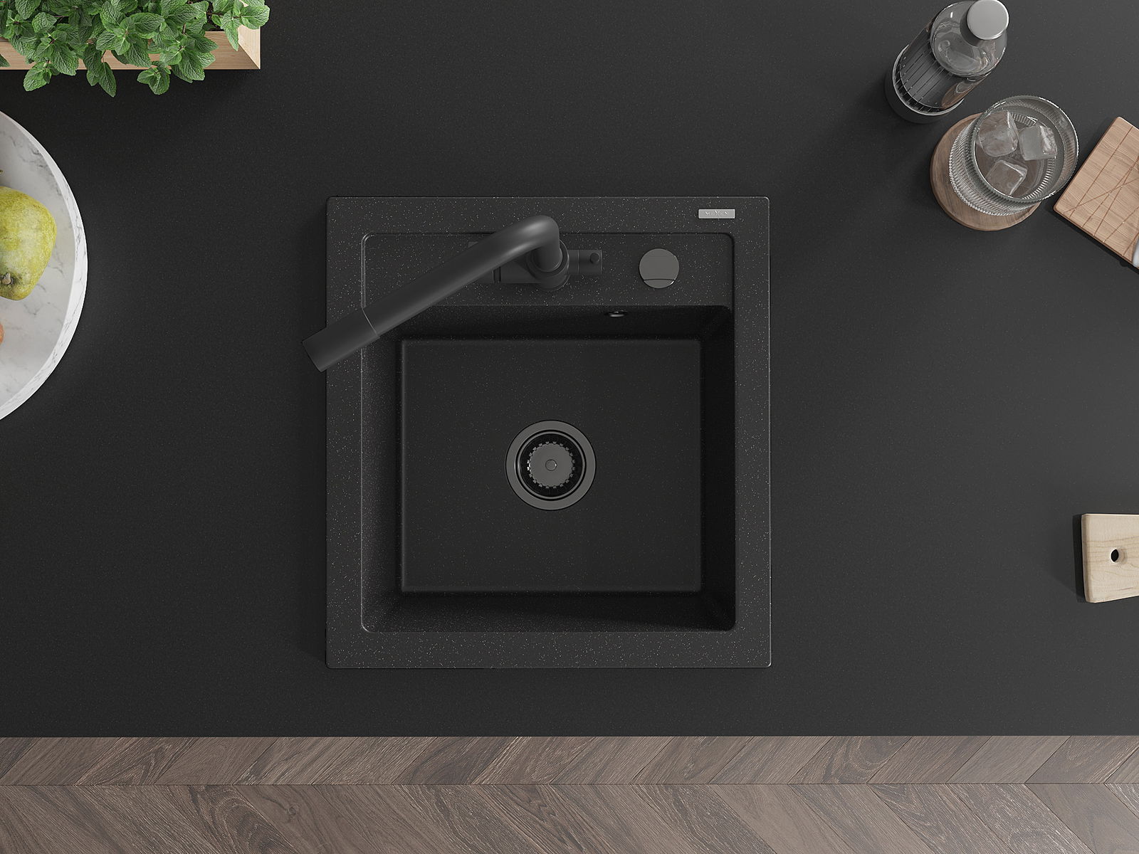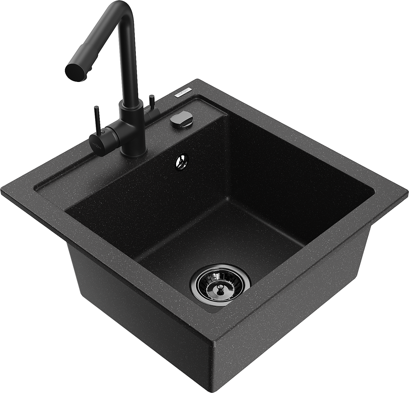 Mexen Vito chiuvetă de granit cu 1 compartiment și baterie de bucătărie Duero, negru/argintiu metalizat