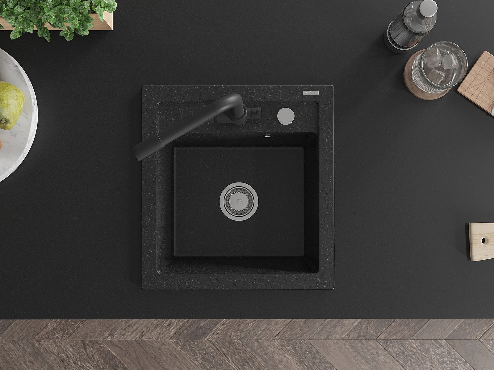 Mexen Vito chiuvetă granit 1-cu o cuvă cu robinet de bucătărie Duero, negru/argintiu metalic - 6503-73-671600-70