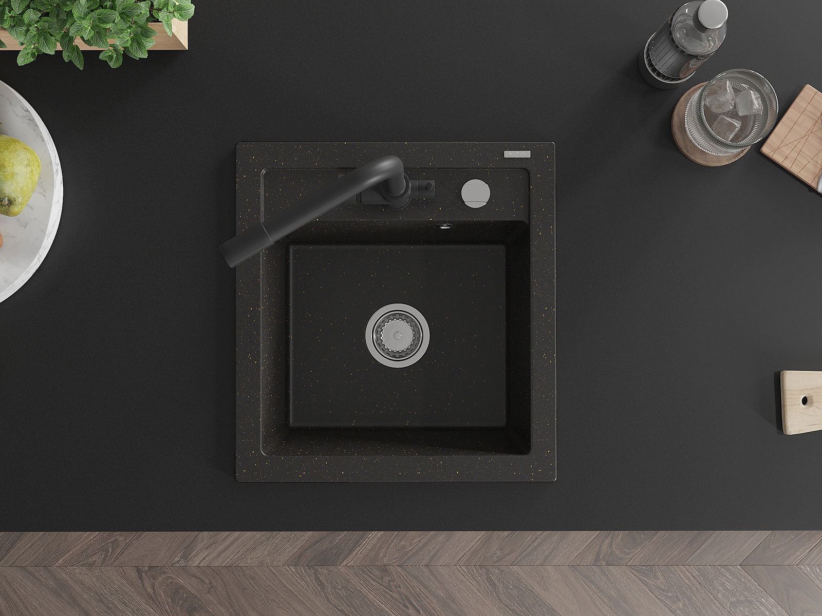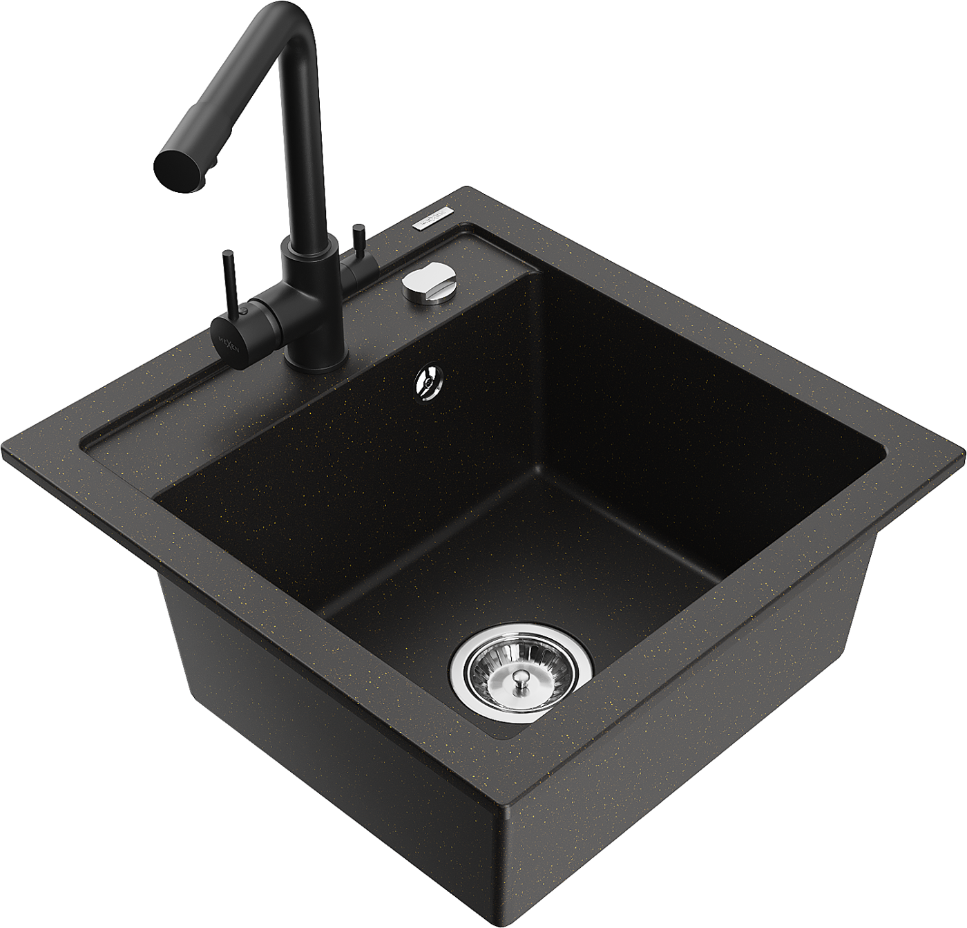 Mexen Vito chiuvetă de bucătărie din granit cu 1 compartiment cu baterie Duero, negru/auriu metalizat - 6503-75-671600-70