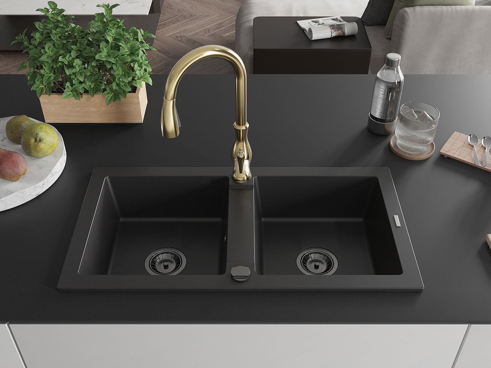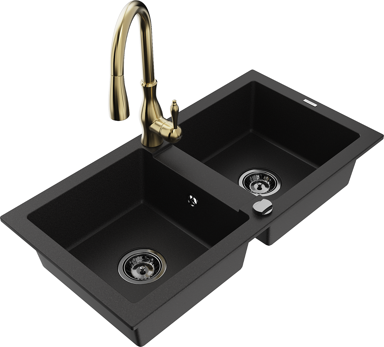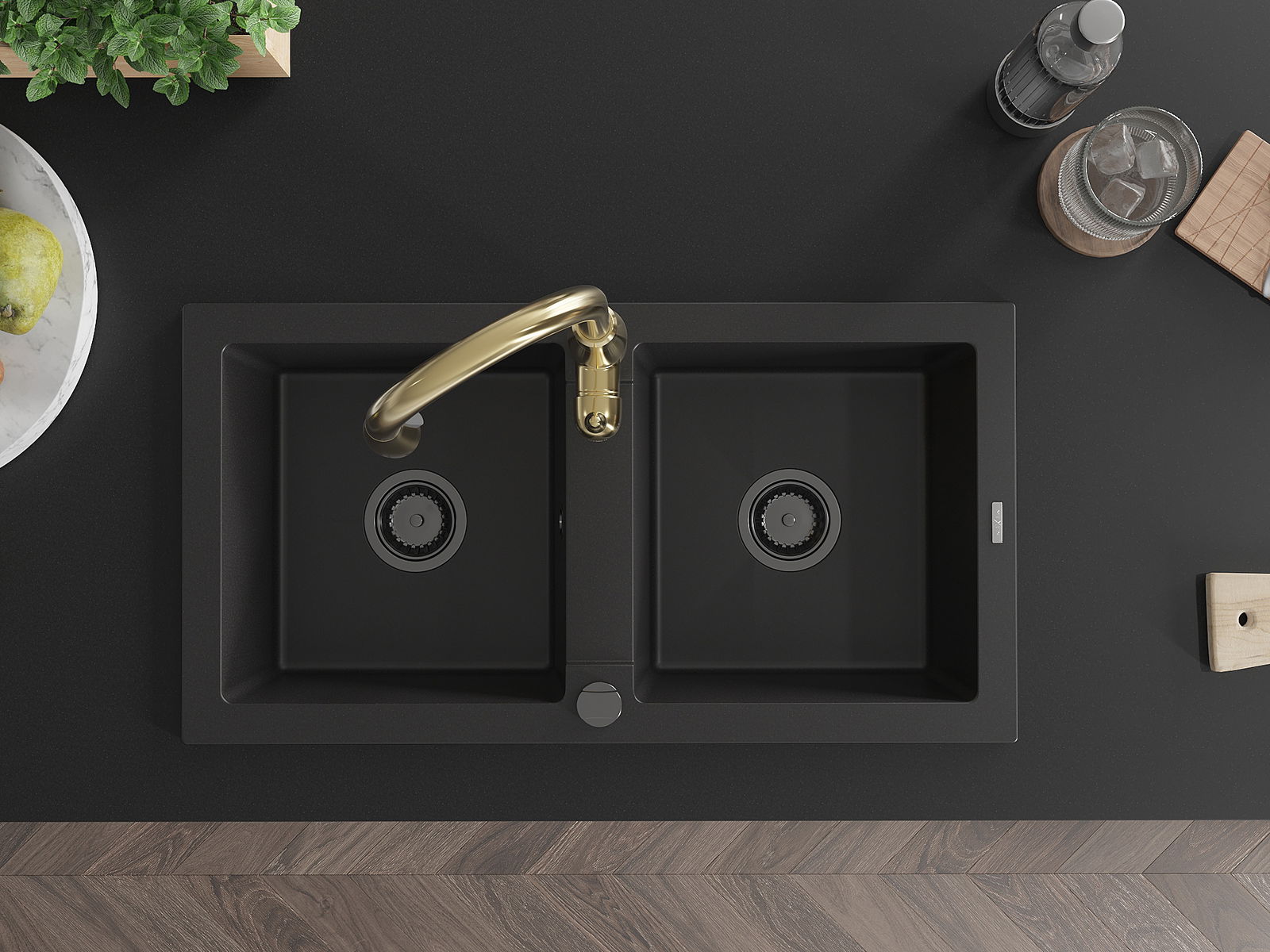 Mexen Mario chiuvetă granit 2 compartimente cu baterie de bucătărie Savita, negru - 6504-77-672601-50-B