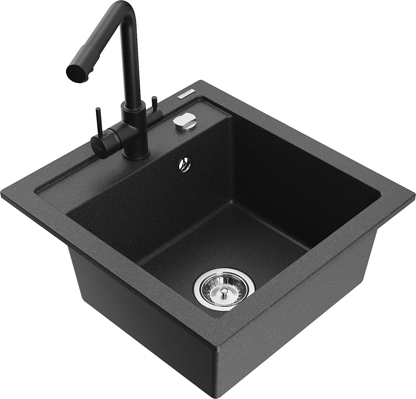Mexen Vito chiuvetă de granit cu 1 compartiment cu baterie de bucătărie Duero, negru cu pete - 6503-76-671600-70