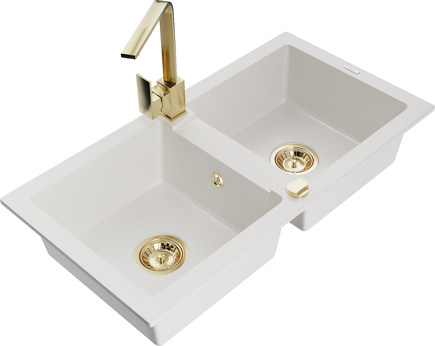 Mexen Mario chiuvetă de granit cu 2 compartimente și baterie de bucătărie Rita, alb - 6504-20-670300-50