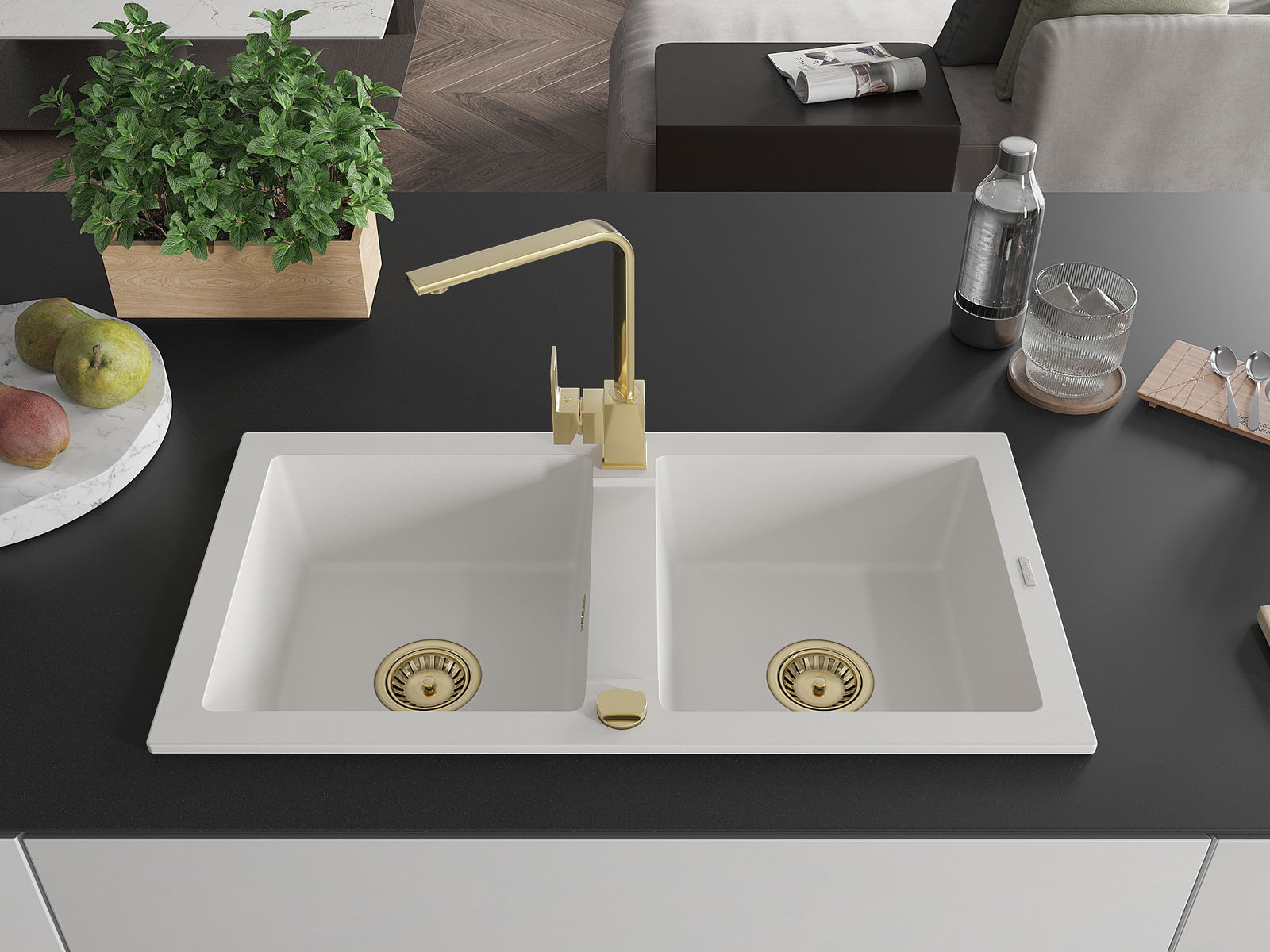 Suprafața chiuvetei este rezistentă la pete și decolorarea, datorită căreia este ușor de curățat și își păstrează culoarea mult timp. Estetică și practic completarea fiecărei bucătării.