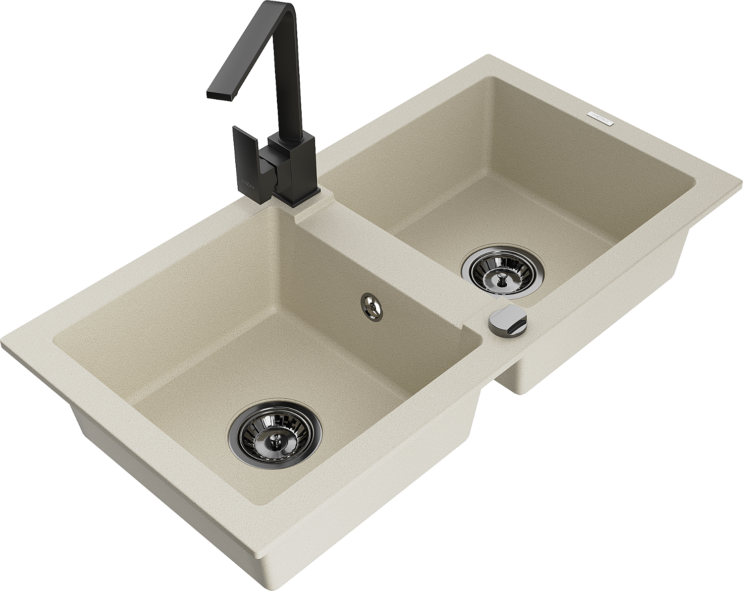 Mexen Mario chiuvetă de bucătărie din granit cu 2 compartimente și baterie de bucătărie Rita, bej - 6504-69-670300-70