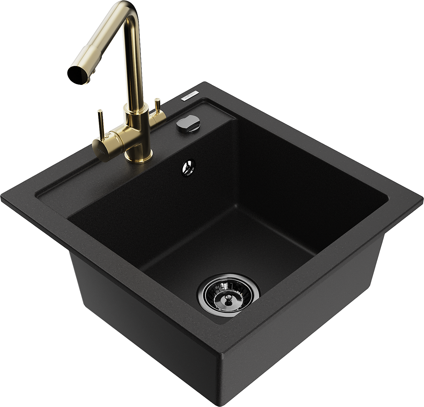 Mexen Vito chiuvetă de granit cu o cuvă cu baterie de bucătărie Duero, neagră - 6503-77-671600-50-B