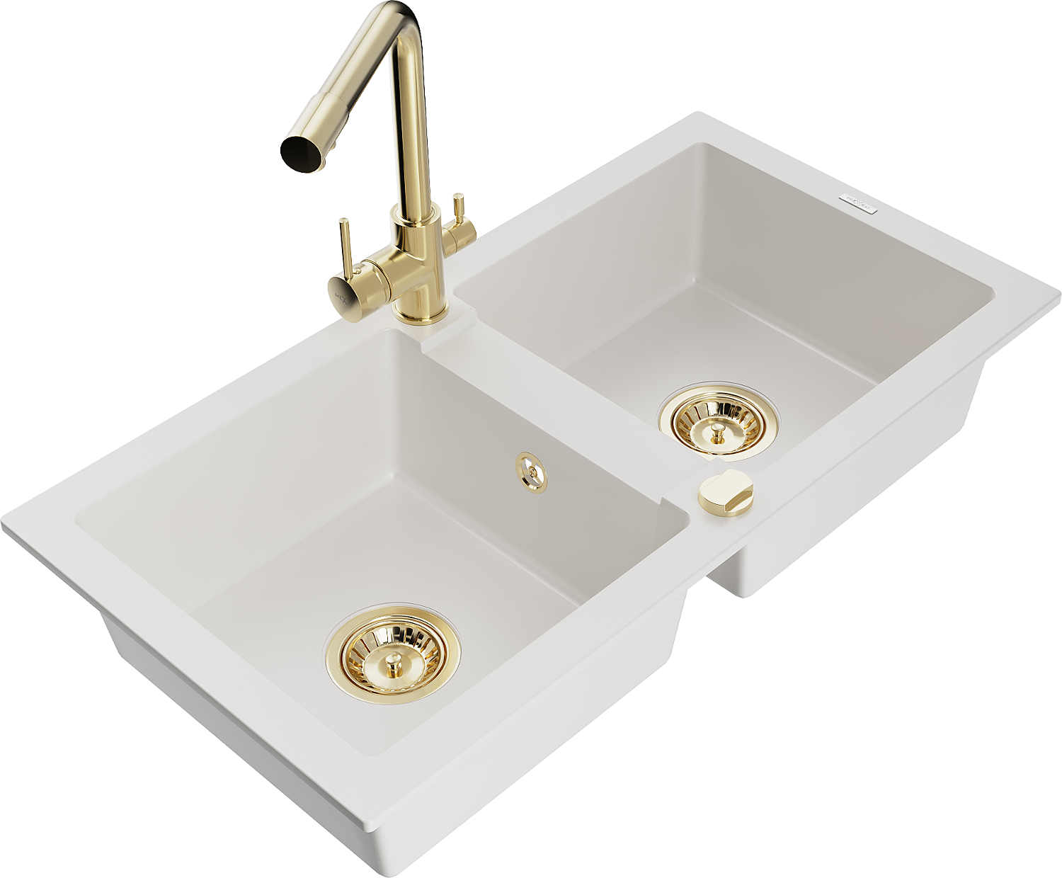 Mexen Mario chiuvetă de bucătărie din granit cu 2 compartimente și baterie de bucătărie Duero, alb - 6504-20-671600-50