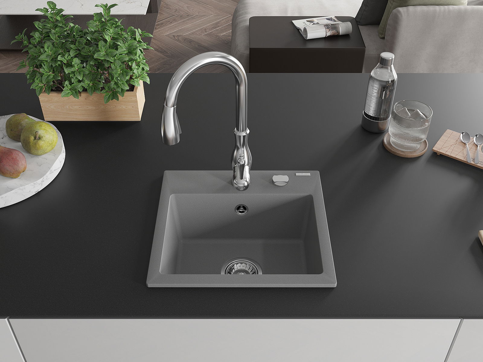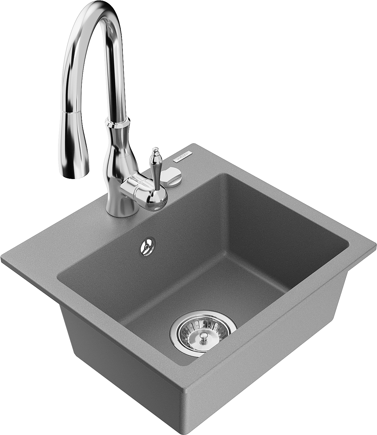 Mexen Milo chiuvetă din granit cu 1 compartiment și baterie de bucătărie Savita, gri - 6505-71-672601-00