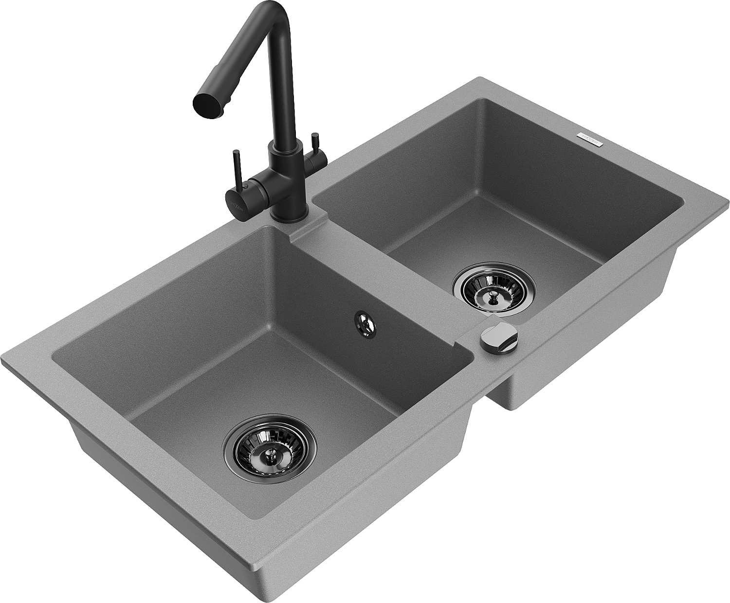 Mexen Mario chiuvetă din granit cu 2 compartimente cu baterie de bucătărie Duero, gri - 6504-71-671600-70-B