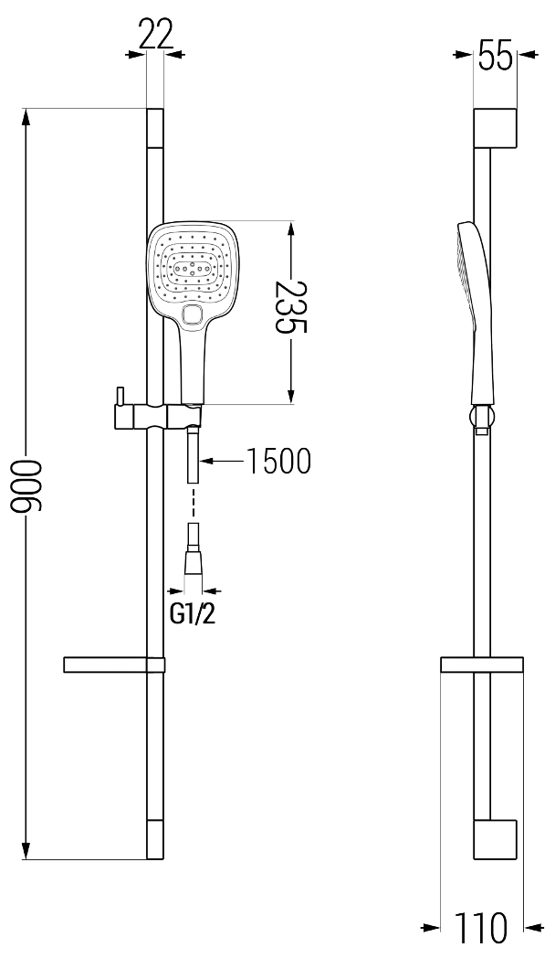 Conexiunea cu fir de 1/2 "este un element standard utilizat frecvent în instalațiile interne de apă. Datorită acestui fapt, conexiunea și asamblarea elementelor ulterioare ale dușului este mult mai ușoară și mai intuitivă.
