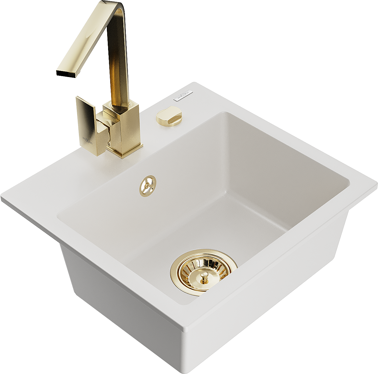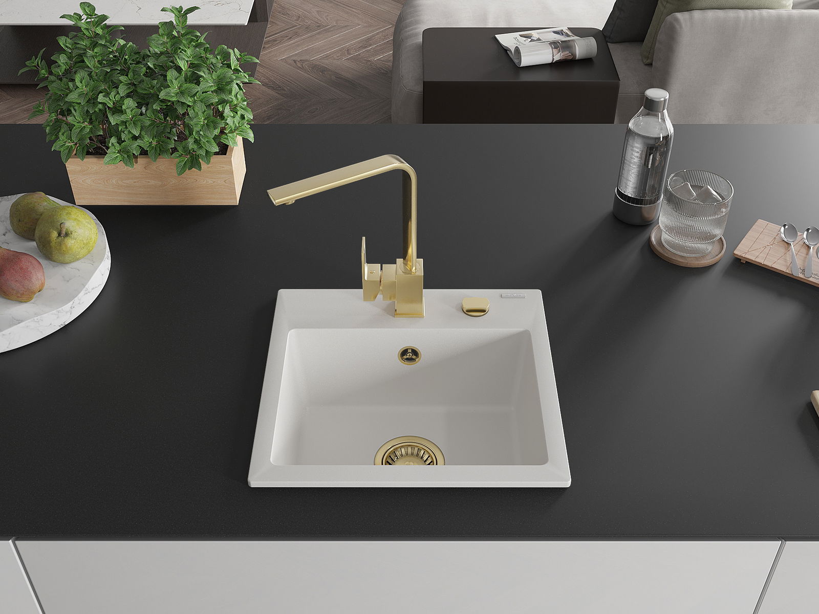 Mexen Milo chiuvetă de granit cu 1 compartiment și baterie de bucătărie Rita, alb - 6505-20-670300-50