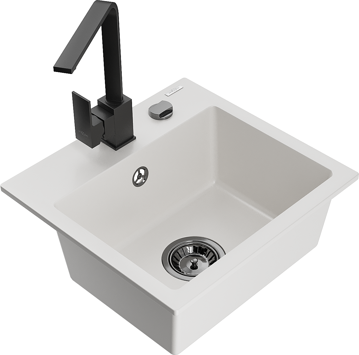 Mexen Milo chiuvetă din granit cu 1 compartiment și baterie de bucătărie Rita, alb - 6505-20-670300-70