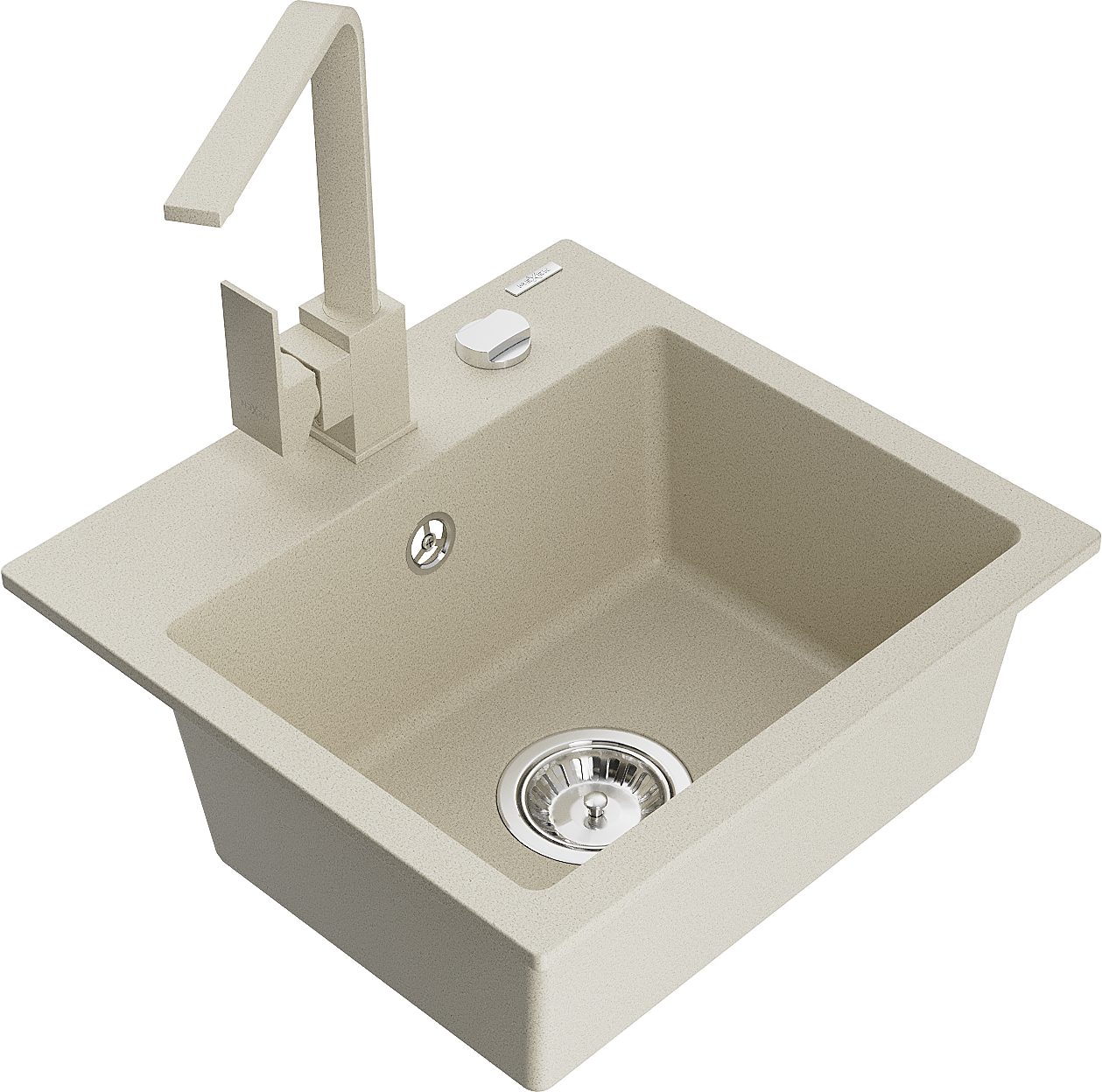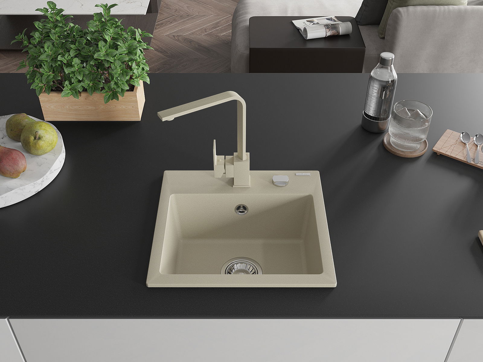 Mexen Milo chiuvetă de bucătărie din granit cu 1 compartiment și baterie de bucătărie Rita, bej - 6505-69-670300-69
