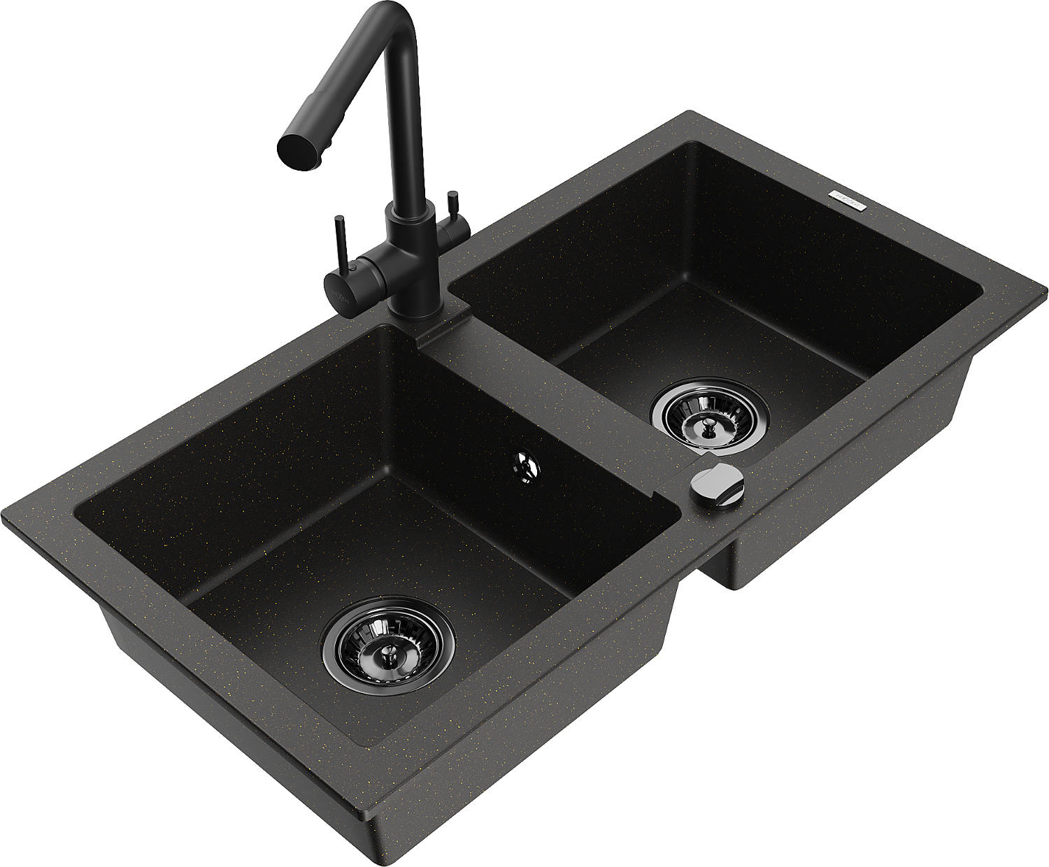 Mexen Mario chiuvetă de bucătărie din granit cu 2 compartimente cu baterie Duero, negru/auriu metalic - 6504-75-671600-70-B