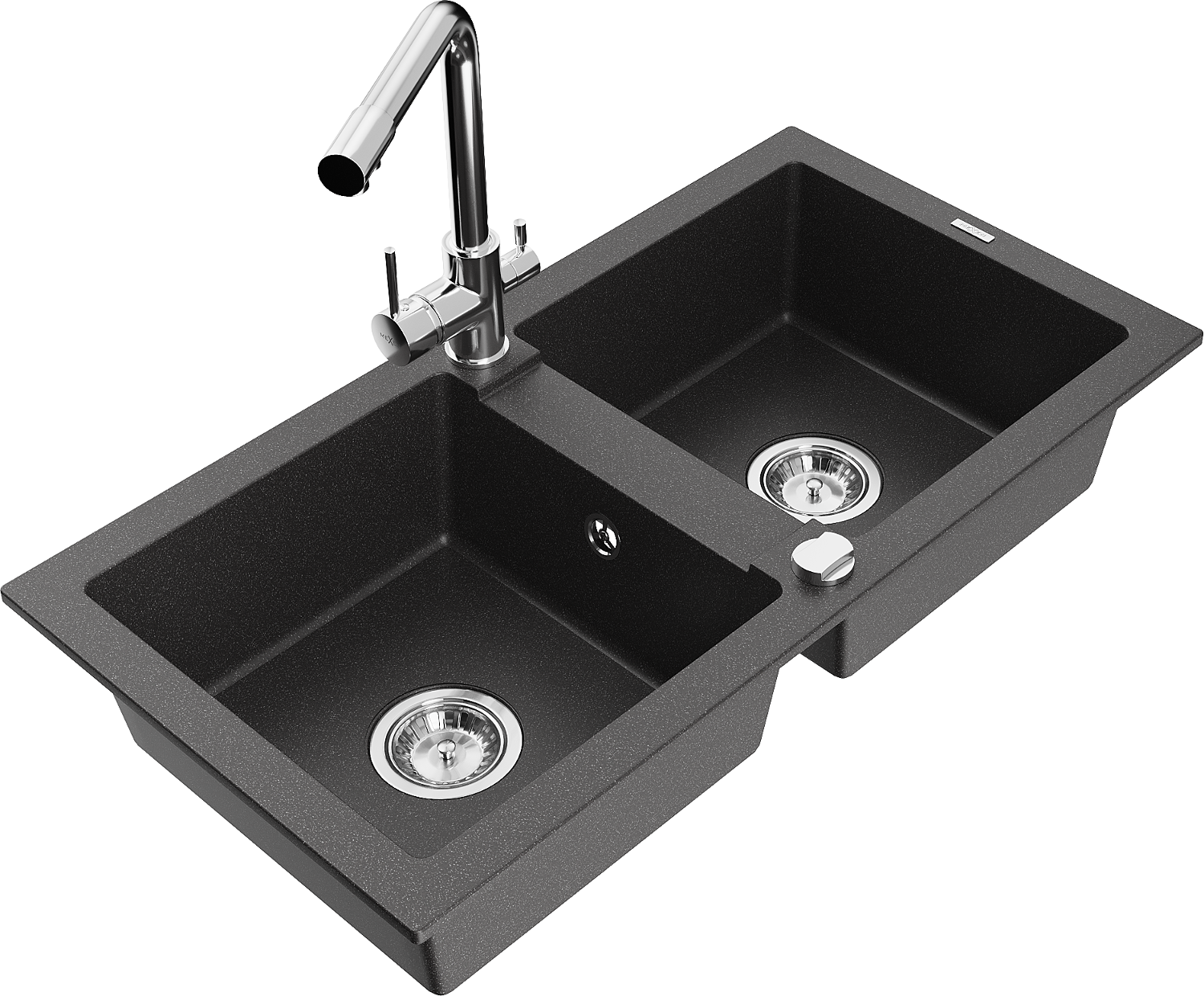 Mexen Mario chiuvetă din granit cu 2 camere cu baterie bucătărie Duero, negru stropit - 6504-76-671600-00