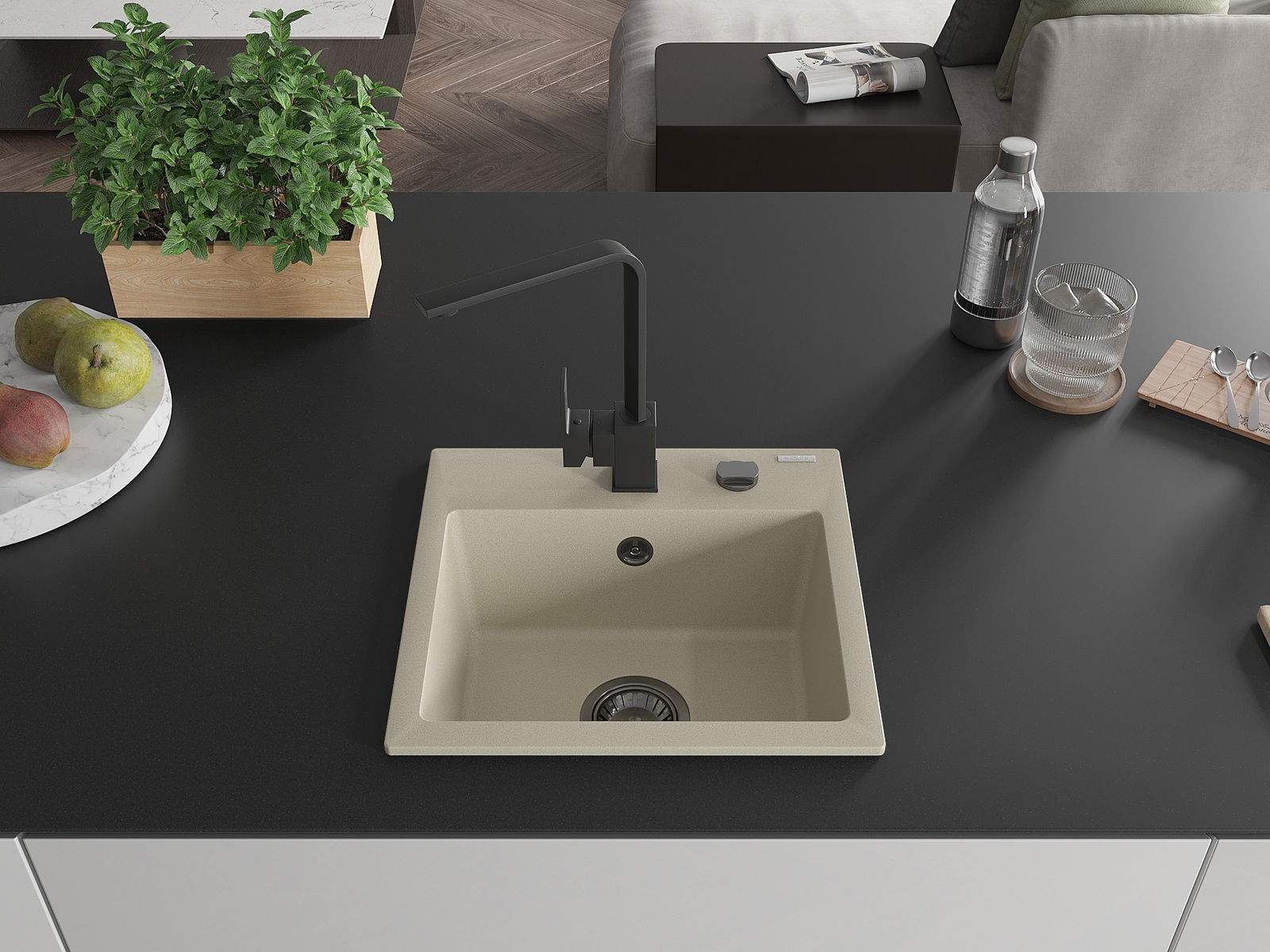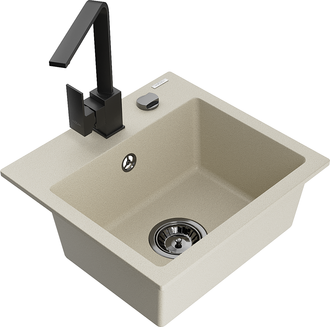 Mexen Milo chiuvetă de granit cu 1 compartiment cu baterie de bucătărie Rita, bej - 6505-69-670300-70