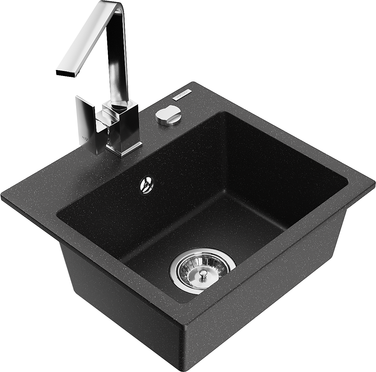 Mexen Milo chiuvetă granit 1-cuvă cu baterie de bucătărie Rita, negru/argintiu metalic - 6505-73-670300-00