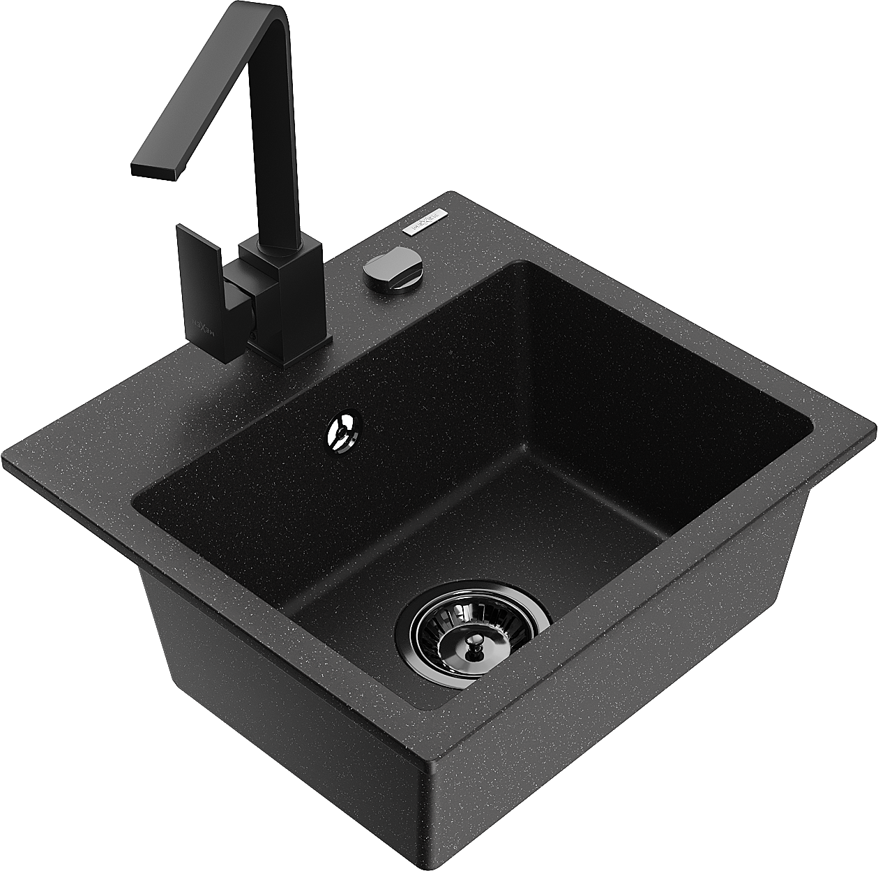 Mexen Milo chiuvetă granitică cu 1 compartiment și baterie de bucătărie Rita, negru/metal argintiu - 6505-73-670300-70-B