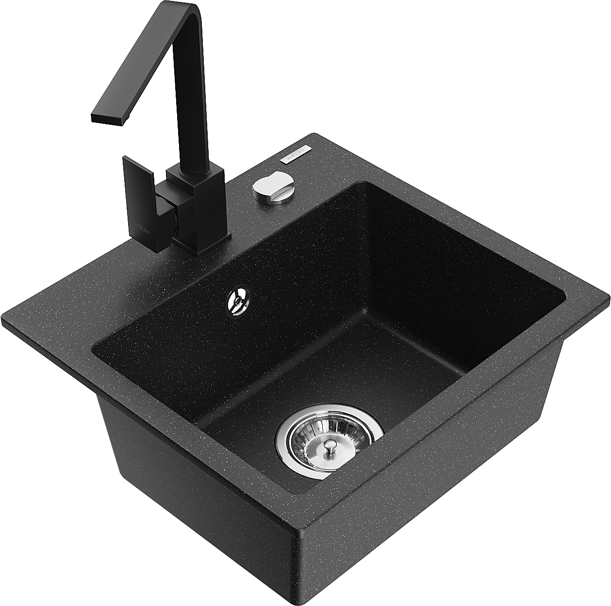 Mexen Milo chiuvetă de granit cu o singură cuvă și baterie de bucătărie Rita, negru/argintiu metalizat - 6505-73-670300-70