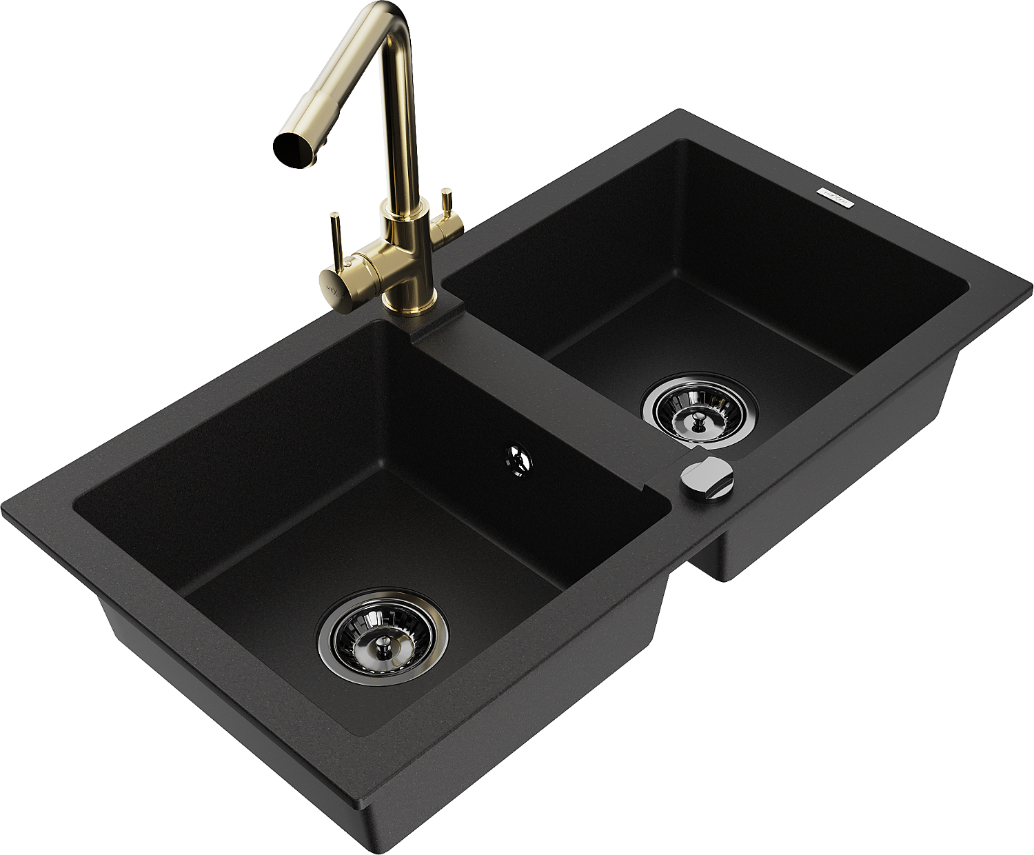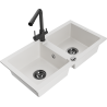 Mexen Mario chiuvetă de bucătărie din granit cu 2 compartimente cu baterie de bucătărie Duero, negru - 6504-77-671600-50-B