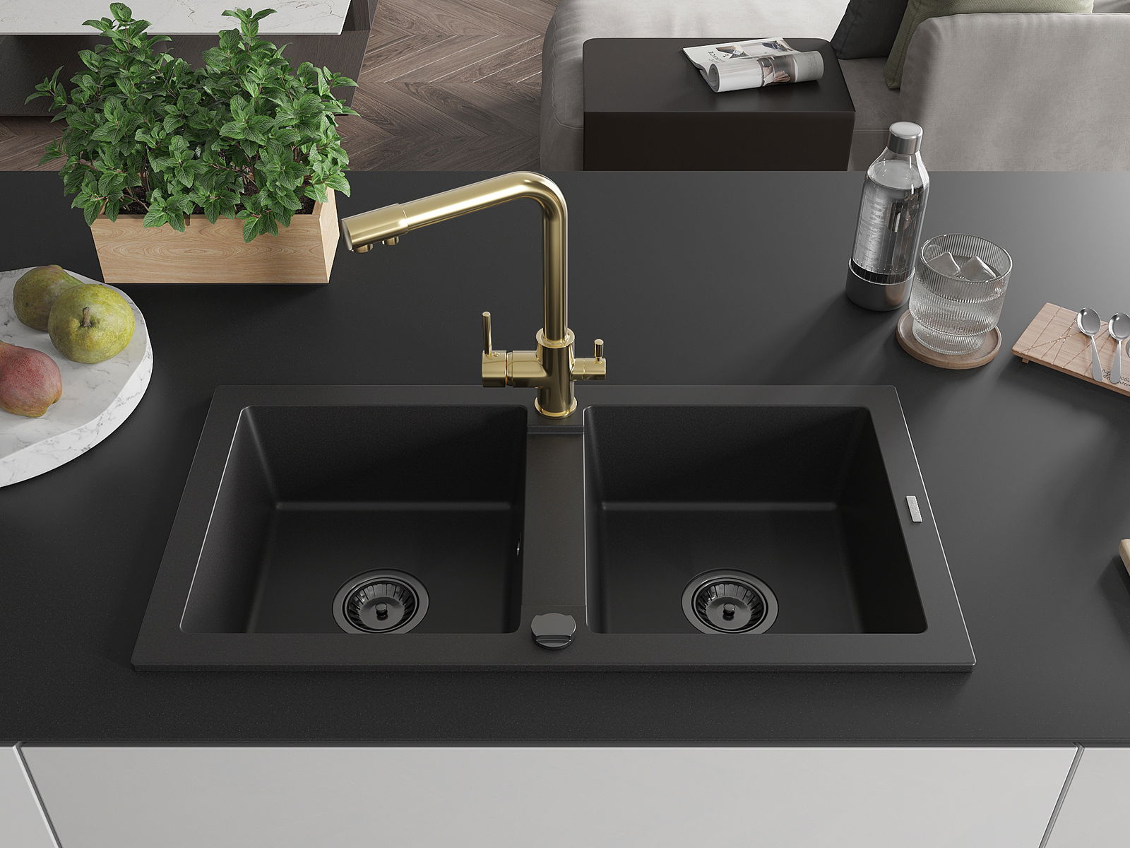Sifonul economisitor de spațiu a fost proiectat pentru a reduce la minimum suprafața ocupată sub chiuvetă. Datorită construcției sale compacte, permite amplasarea liberă a coșurilor de gunoi sau a altor accesorii în dulap. Este o soluție practică și modernă, ideală pentru bucătării mici sau interioare unde fiecare centimetru de spațiu contează.