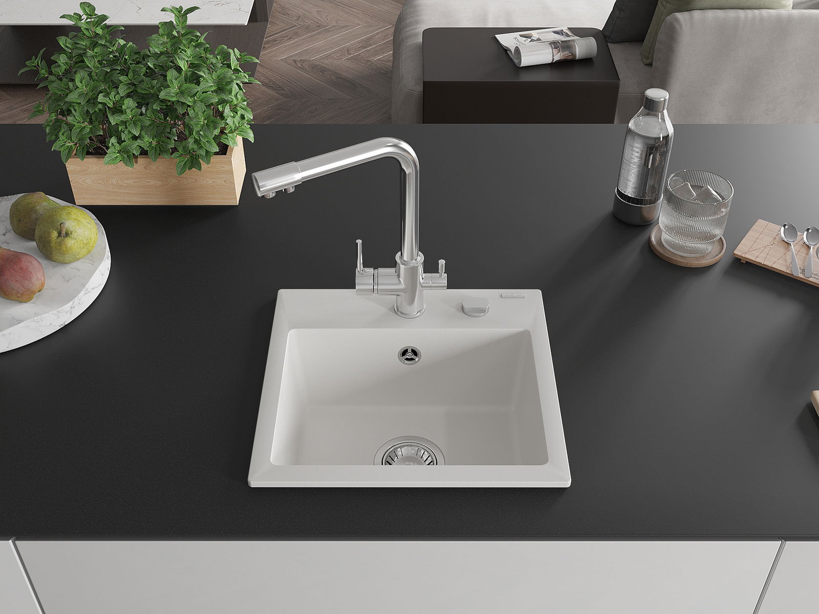 Chiuveta a fost realizată din granit de înaltă calitate. Reprezintă un complement elegant și, mai presus de toate, practic pentru orice bucătărie, indiferent de stilul acesteia. Calitatea înaltă și durabilitatea granitului asigură o utilizare de lungă durată.