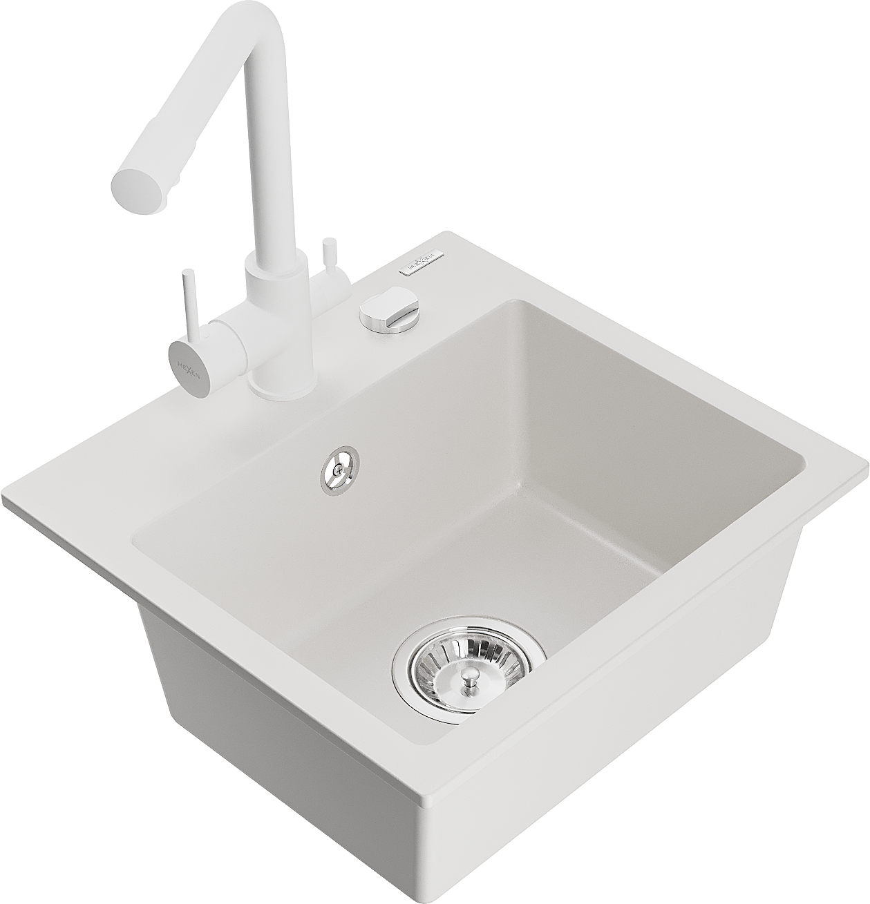 Mexen Milo chiuvetă din granit cu 1 compartiment și baterie de bucătărie Duero, albă - 6505-20-671600-20