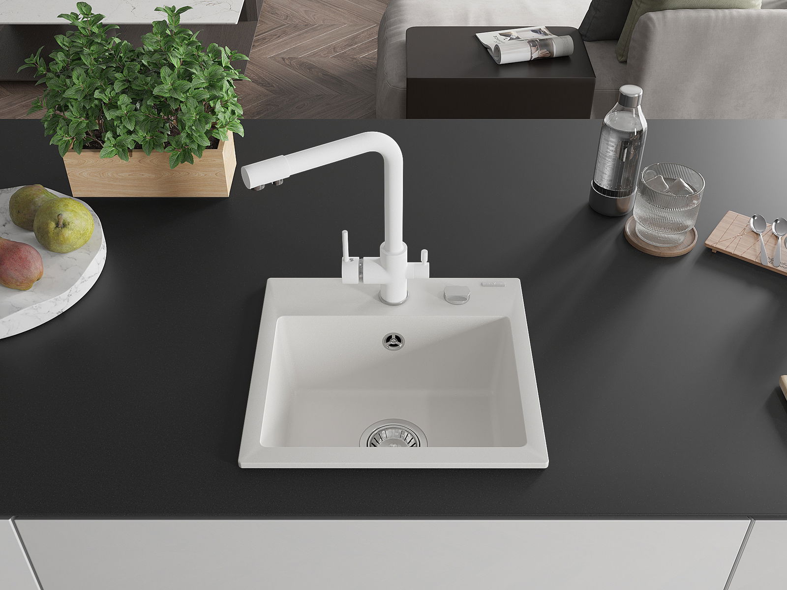 Suprafața chiuvetei este rezistentă la pete și decolorare, ceea ce o face ușor de întreținut și își păstrează culoarea pentru o perioadă lungă de utilizare. Un complet estetic și practic pentru orice bucătărie.