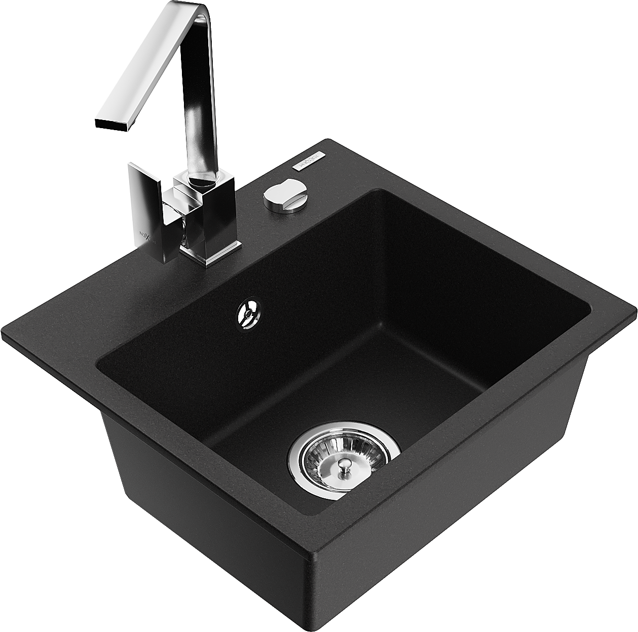 Mexen Milo chiuvetă de granit cu 1 compartiment cu baterie de bucătărie Rita, negru - 6505-77-670300-00