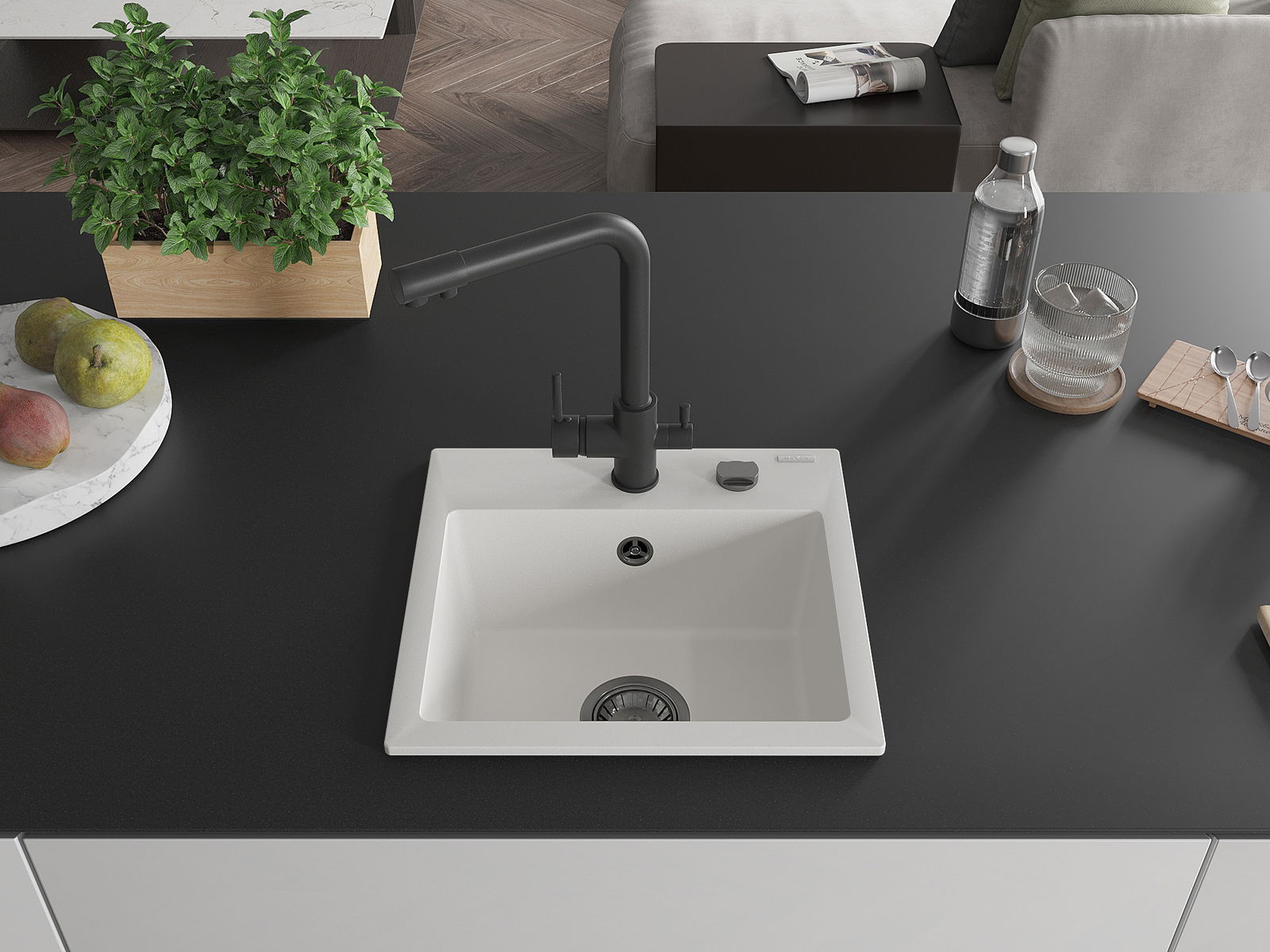 Chiuveta a fost realizată din granit de înaltă calitate. Reprezintă un complement elegant și, mai presus de toate, practic pentru orice bucătărie, indiferent de stilul acesteia. Calitatea înaltă și durabilitatea granitului asigură o utilizare de lungă durată.