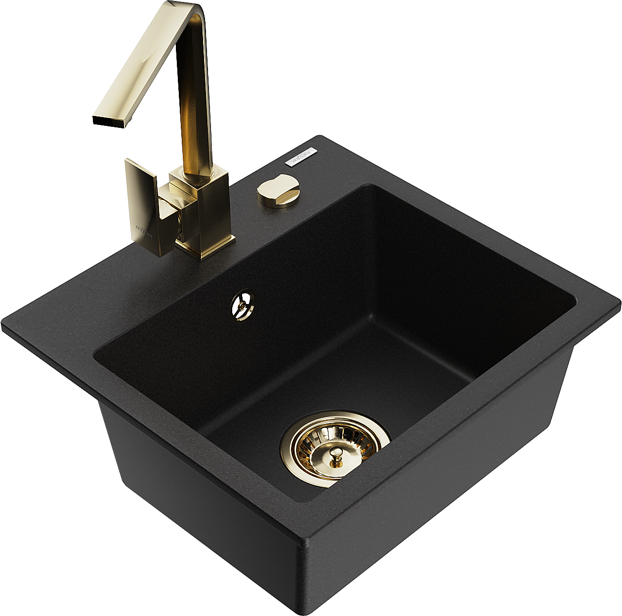 Mexen Milo chiuvetă de bucătărie din granit cu 1 compartiment și baterie Rita, negru - 6505-77-670300-50