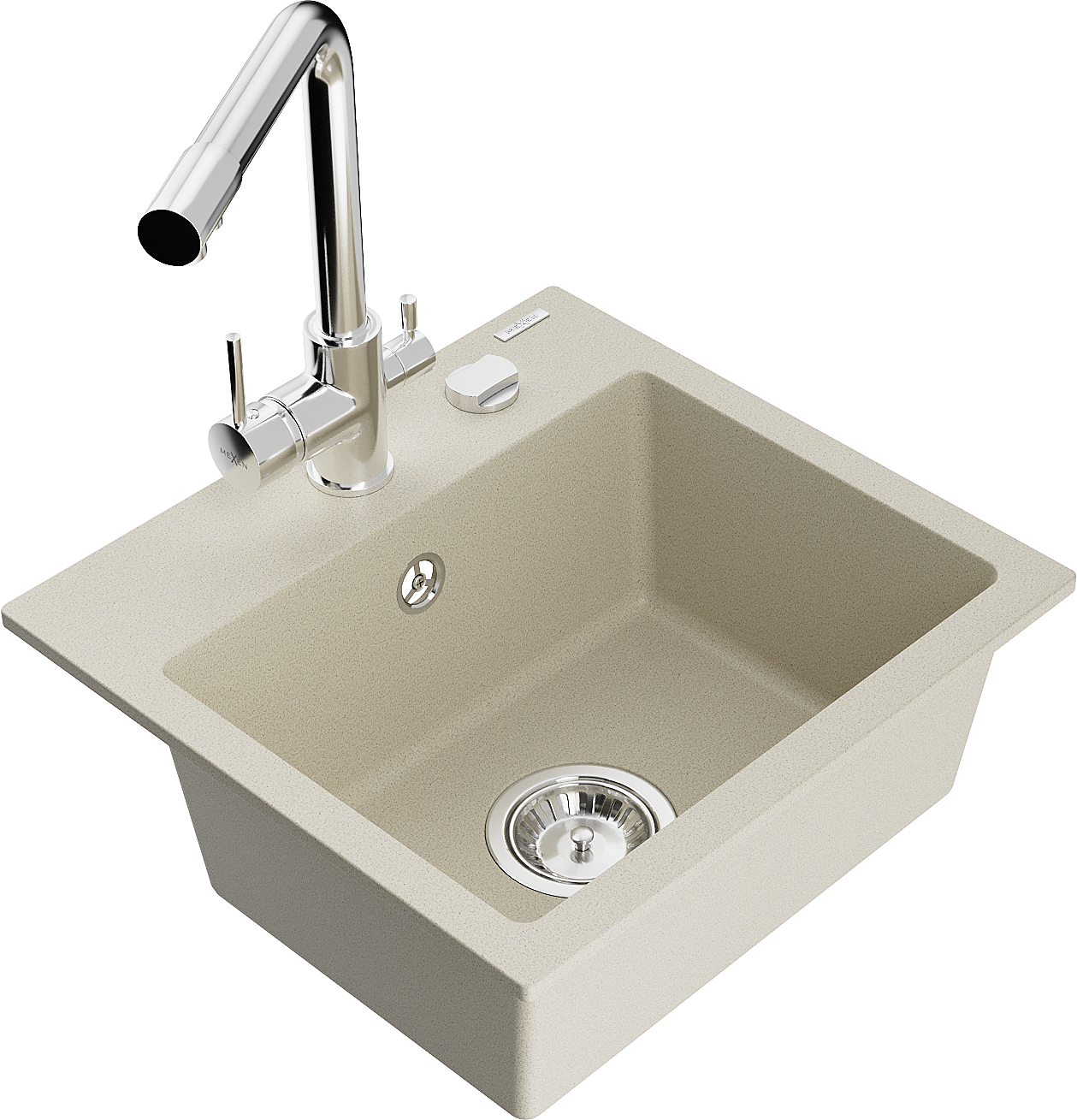 Mexen Milo chiuvetă de bucătărie din granit cu 1 cameră și baterie de bucătărie Duero, bej - 6505-69-671600-00