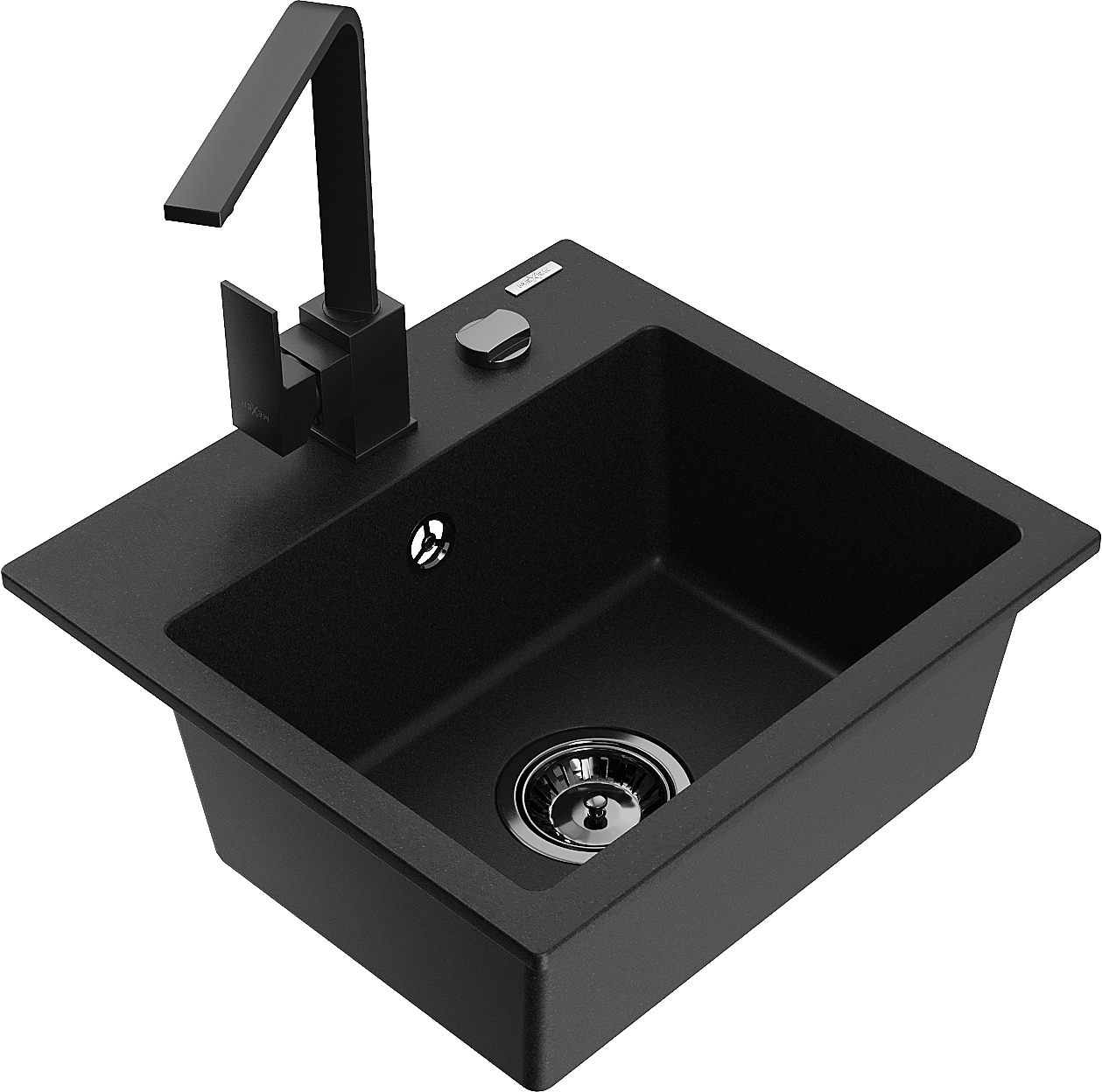 Mexen Milo chiuvetă de granit cu 1 compartiment cu baterie de bucătărie Rita, negru - 6505-77-670300-70-B