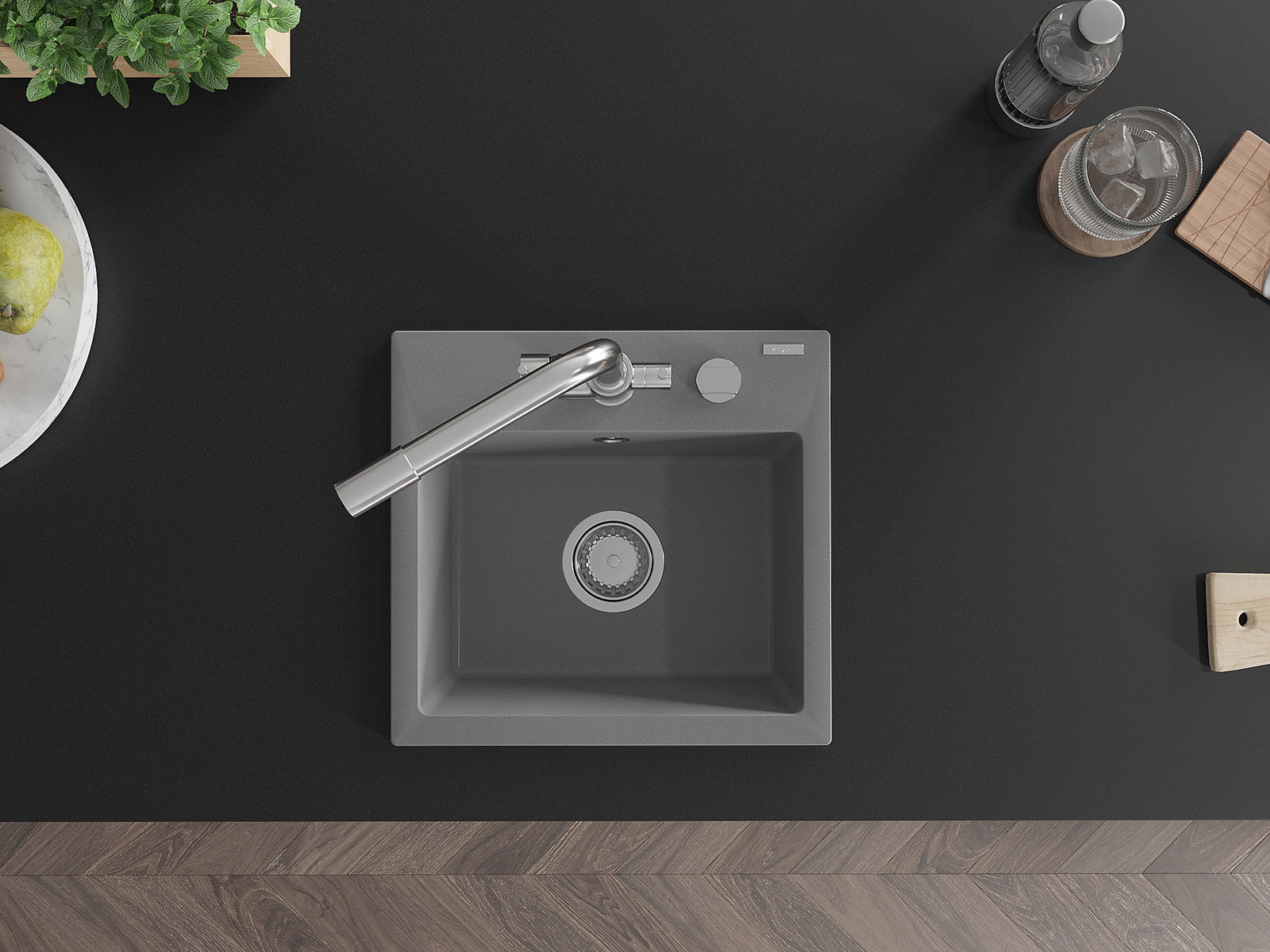 Mexen Milo chiuvetă de bucătărie din granit cu 1 compartiment și baterie de bucătărie Duero, gri - 6505-71-671600-00