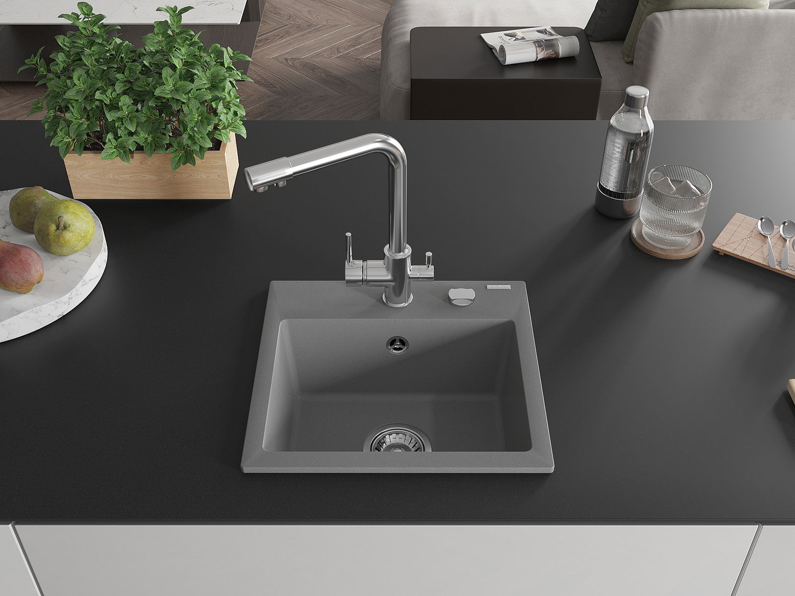 Chiuveta a fost realizată din granit de înaltă calitate. Reprezintă un complement elegant și, mai presus de toate, practic pentru orice bucătărie, indiferent de stilul acesteia. Calitatea înaltă și durabilitatea granitului asigură o utilizare de lungă durată.