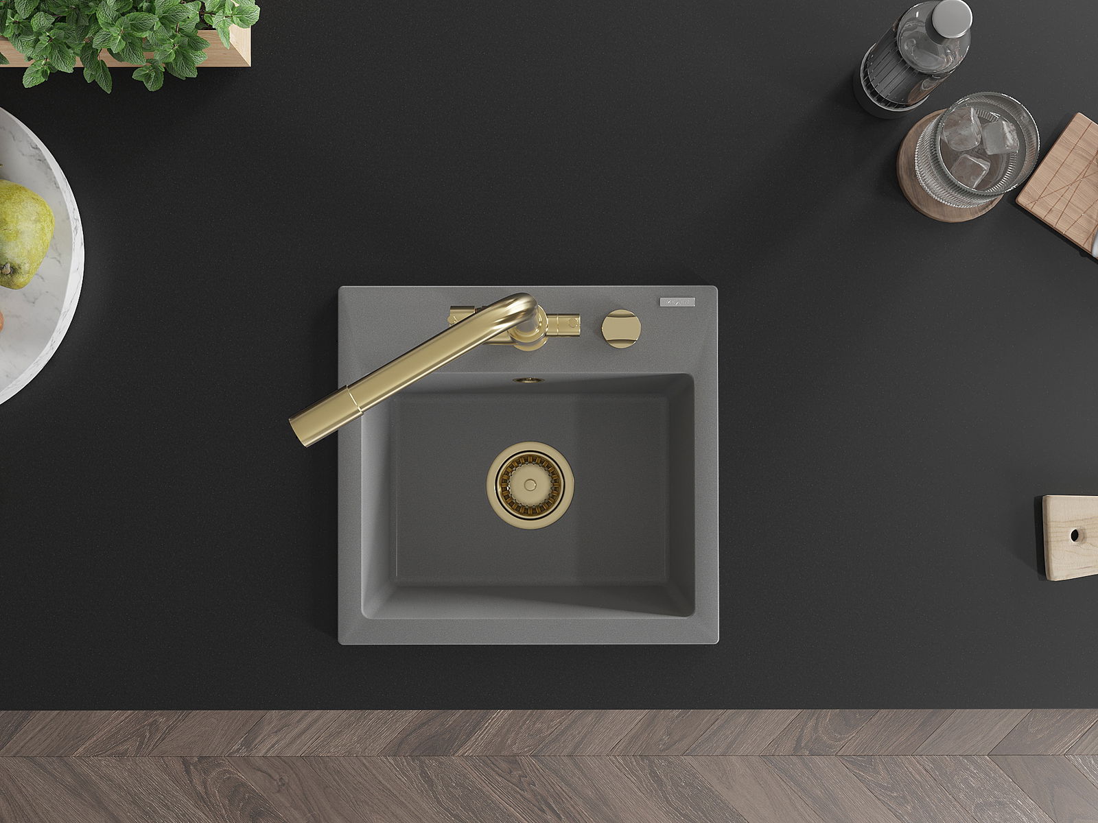 Mexen Milo chiuvetă de bucătărie din granit cu 1 compartiment și baterie de bucătărie Duero, gri - 6505-71-671600-50