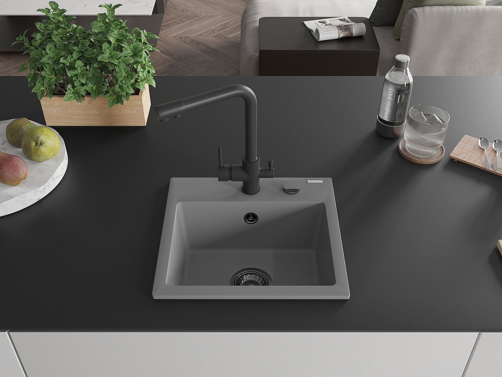 Chiuveta a fost realizată din granit de înaltă calitate. Reprezintă un complement elegant și, mai presus de toate, practic pentru orice bucătărie, indiferent de stilul acesteia. Calitatea înaltă și durabilitatea granitului asigură o utilizare de lungă durată.