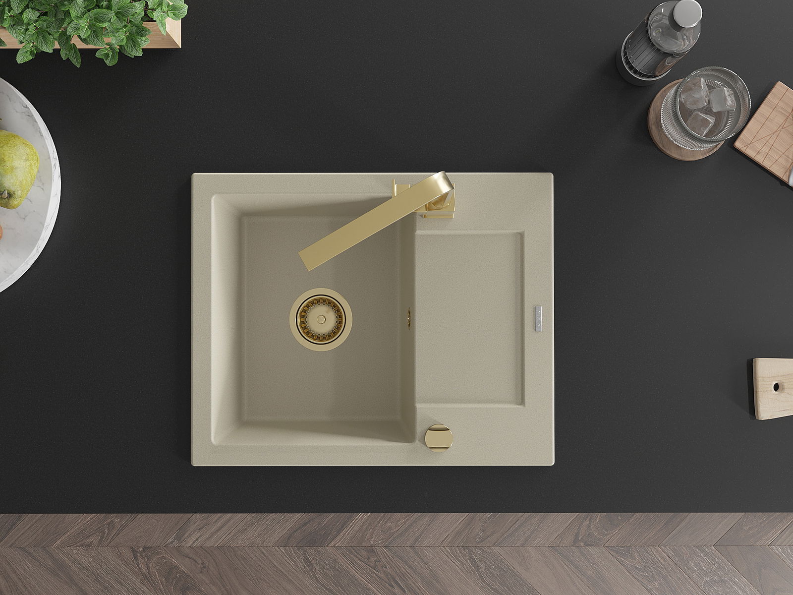Suprafața chiuvetei este rezistentă la pete și decolorare, ceea ce o face ușor de întreținut și își păstrează culoarea pentru o perioadă lungă de utilizare. Un complet estetic și practic pentru orice bucătărie.