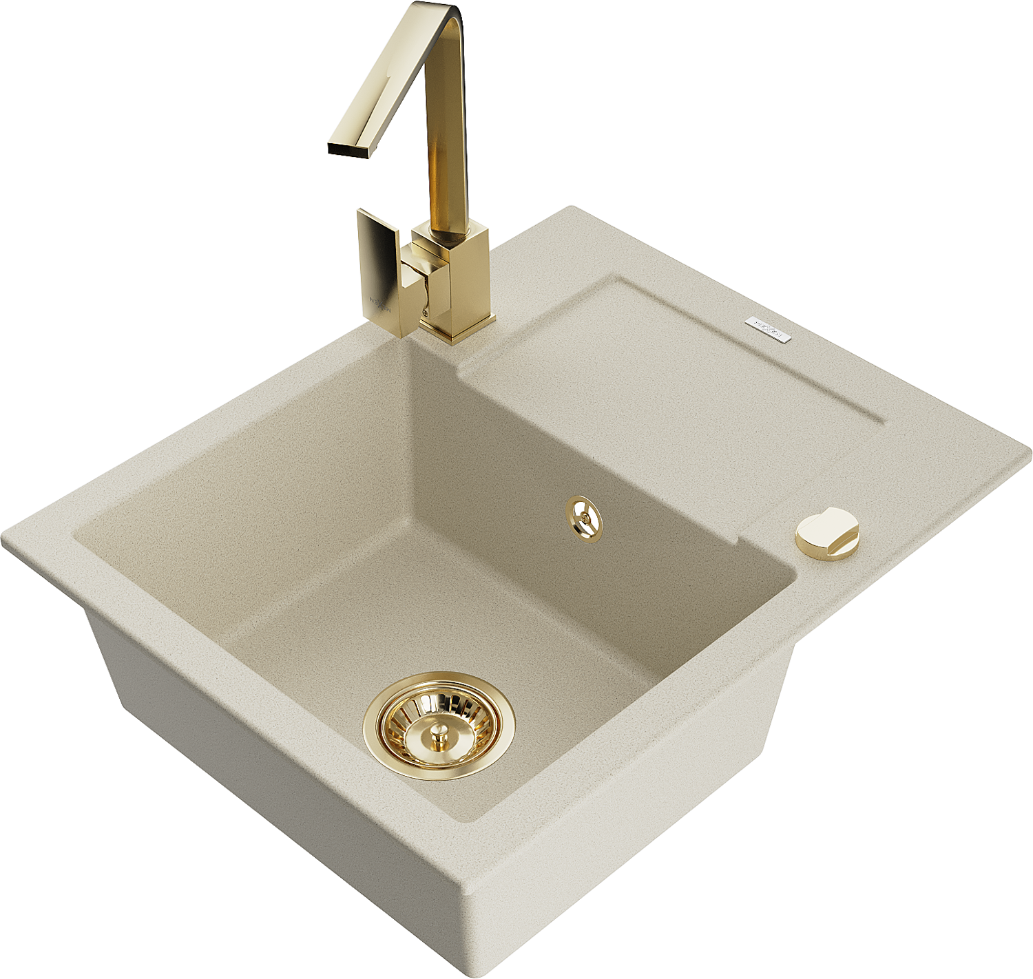 Mexen Enzo chiuvetă de granit cu o cuvă și scurgător, cu baterie de bucătărie Rita, bej - 6506-69-670300-50