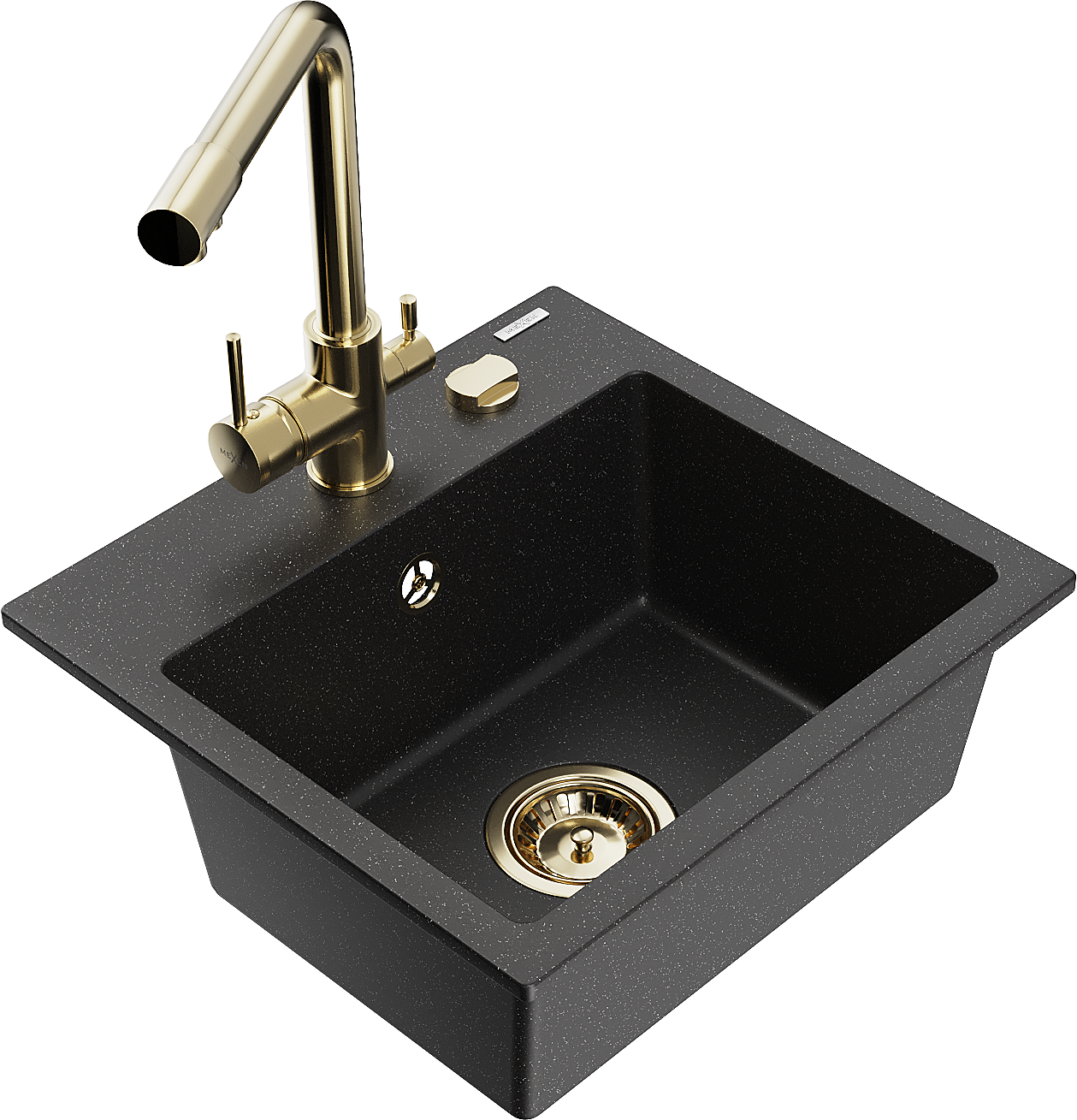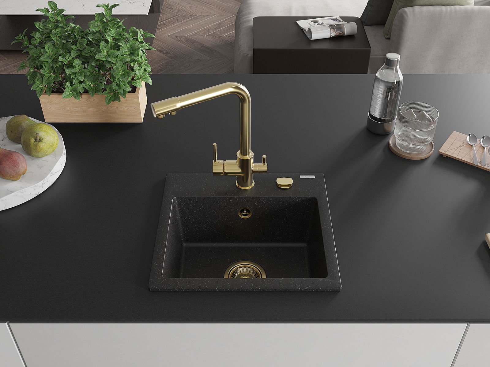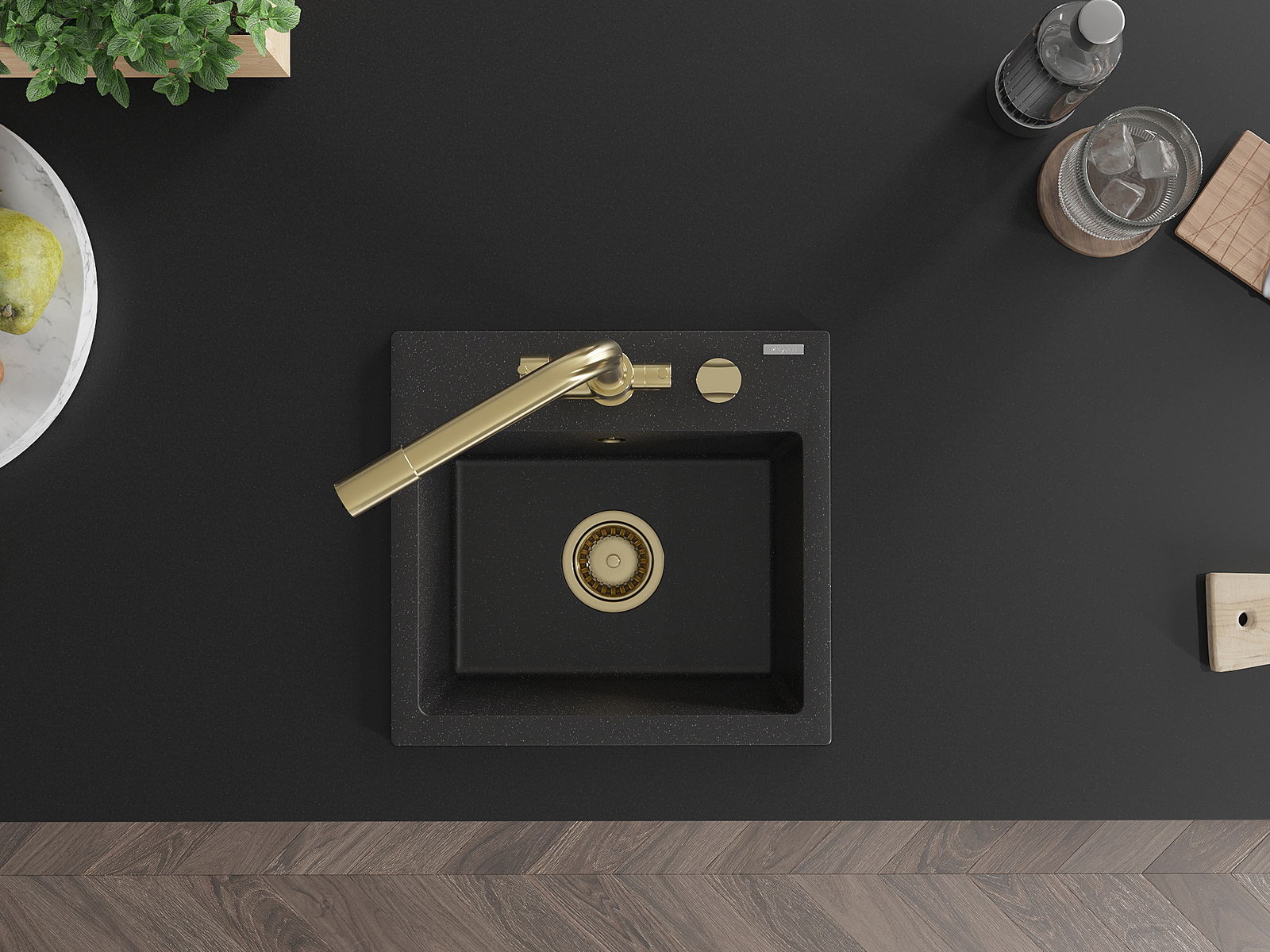 Mexen Milo chiuvetă de granit cu 1 compartiment, cu baterie de bucătărie Duero, negru/argintiu metalic - 6505-73-671600-50