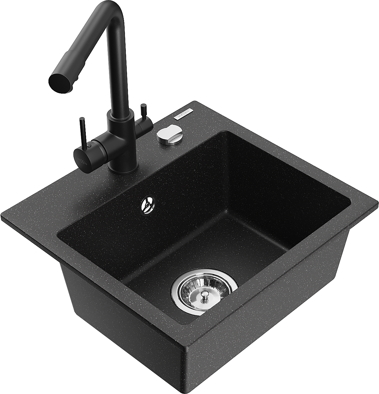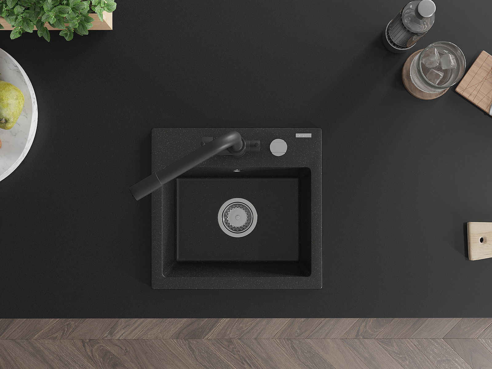 Mexen Milo chiuvetă de granit cu 1 compartiment și baterie de bucătărie Duero, negru/argintiu metalic - 6505-73-671600-70