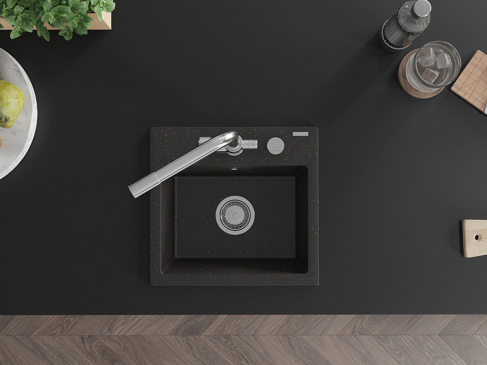 Mexen Milo chiuvetă de granit cu 1 compartiment și baterie de bucătărie Duero, negru/auriu metalic - 6505-75-671600-00