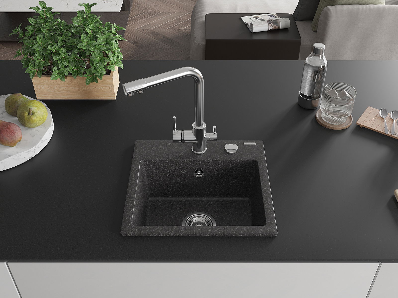 Chiuveta a fost realizată din granit de înaltă calitate. Reprezintă un complement elegant și, mai presus de toate, practic pentru orice bucătărie, indiferent de stilul acesteia. Calitatea înaltă și durabilitatea granitului asigură o utilizare de lungă durată.
